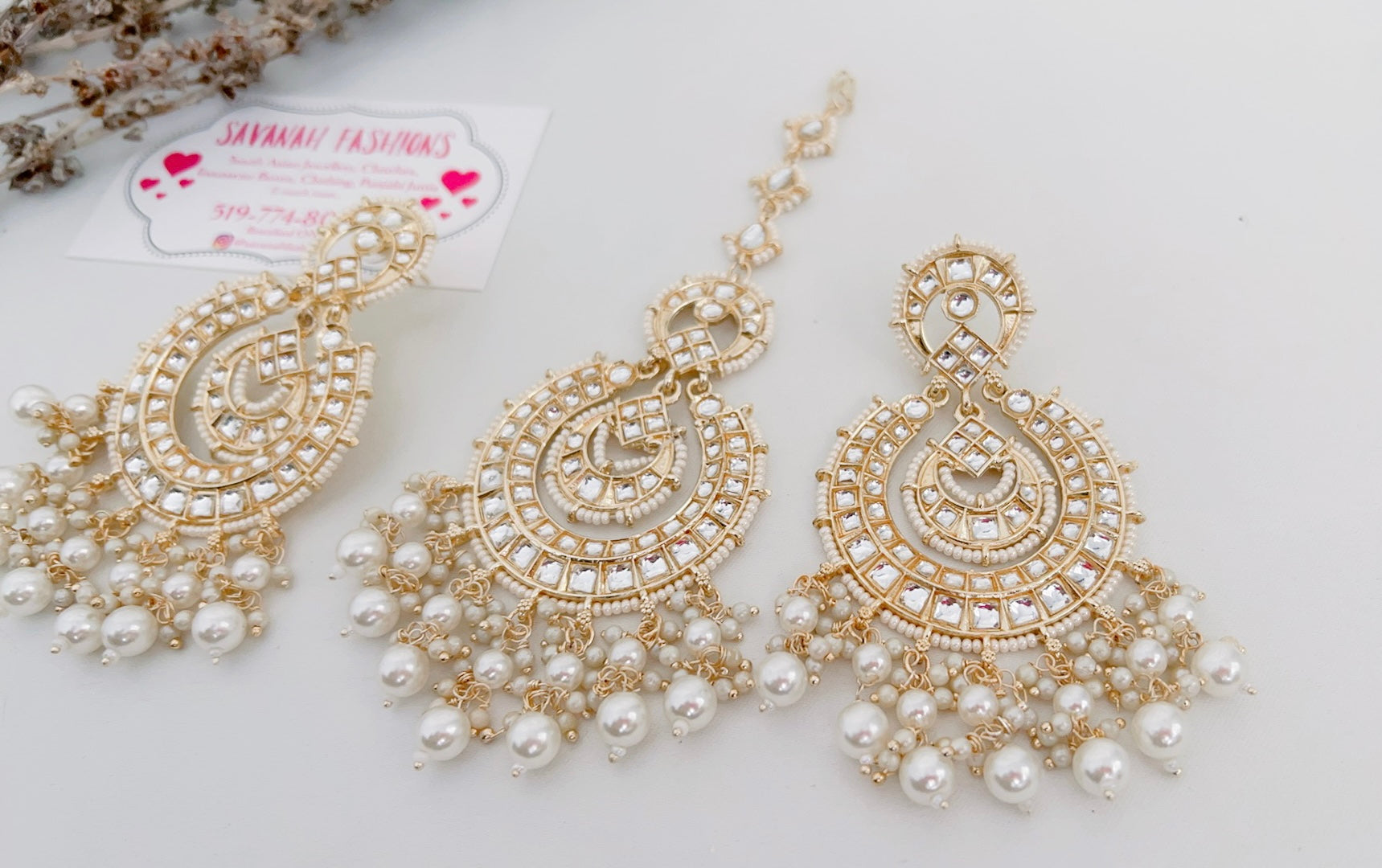 Our Anara tikka set is based on an elegant ivory colour with pearls. Extremely light weight design and comfortable.