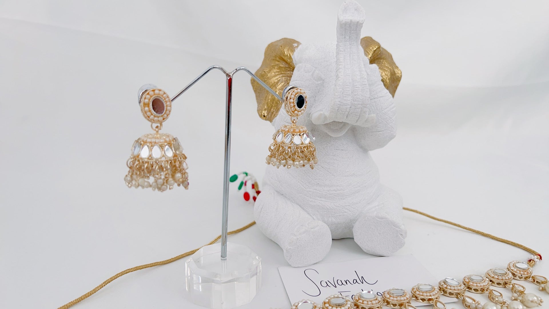 Ayat set is a mirror inspired design consisting of a necklace that hugs you like a choker and earrings. It is a part of our light weight collection, comfortable to wear.