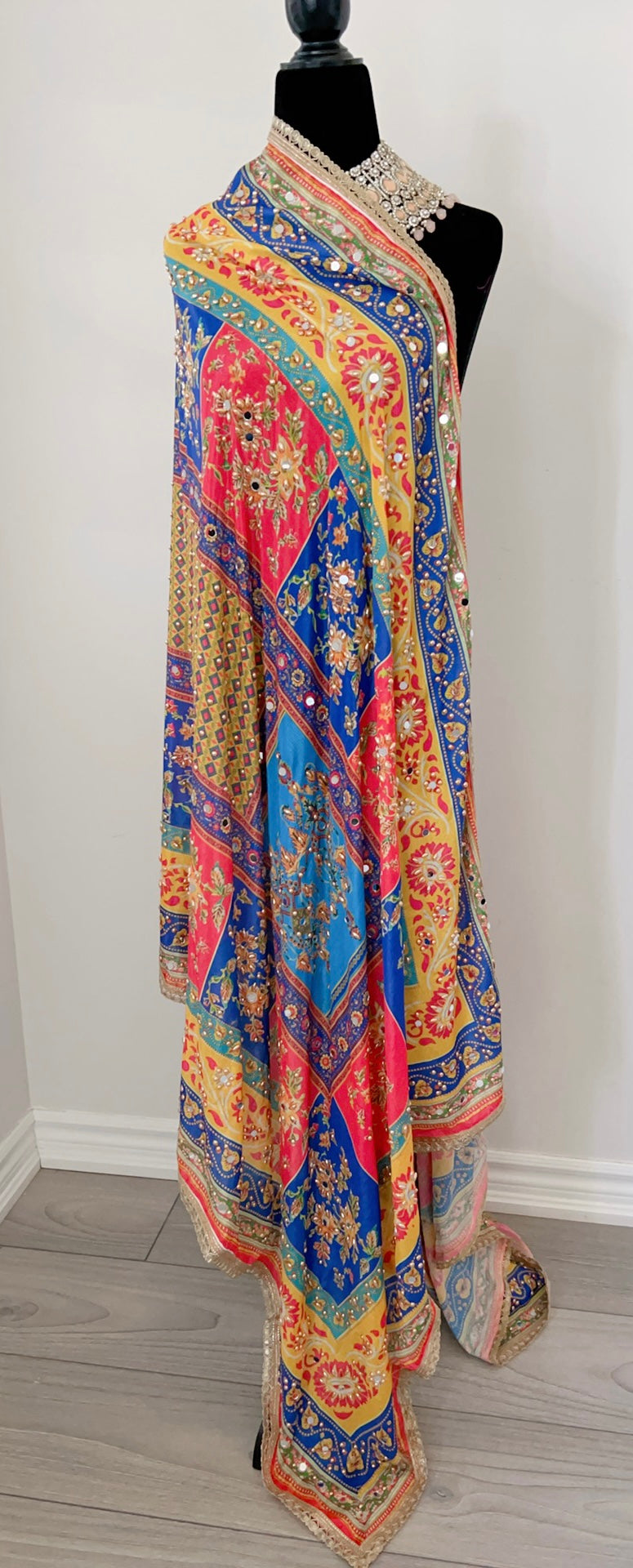 Raise your hand 'coz you missed these gorgeous dupattas...! Especially during a wedding. These beauties make a great addition to any punjabi jaggo event, or a bridal engagement party/pre-wedding photos.. Accessorize it with a plain suit and you've got all the glam you need!