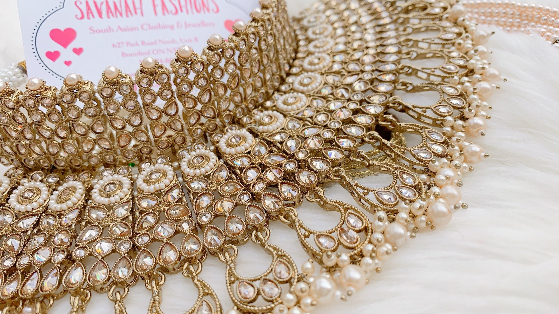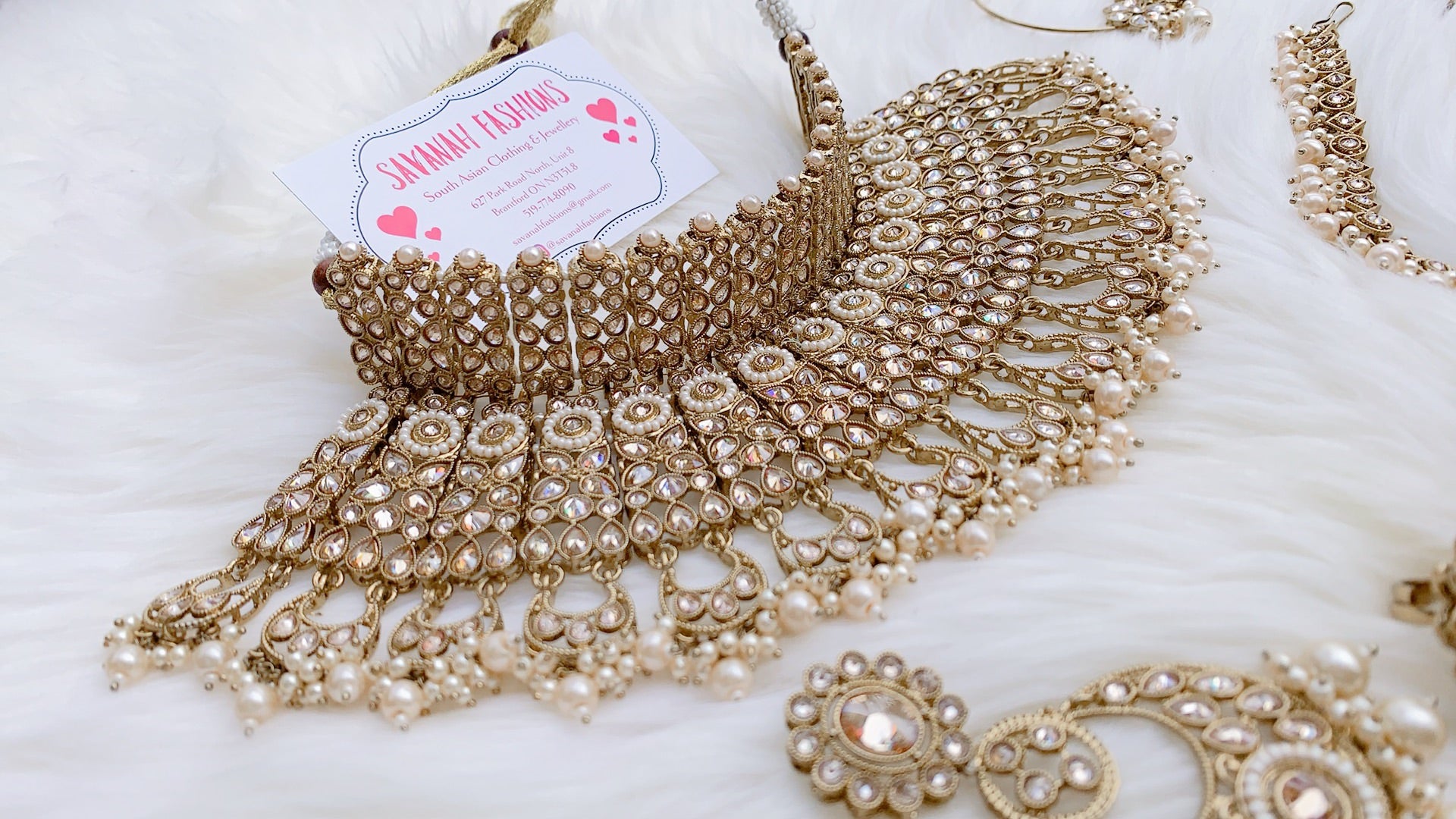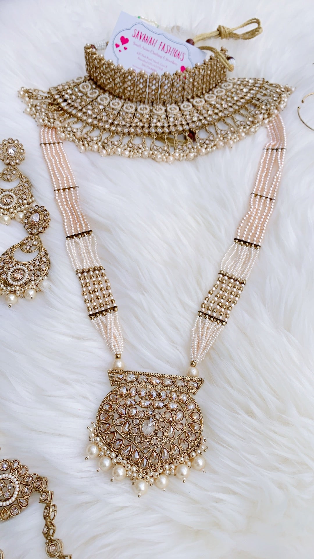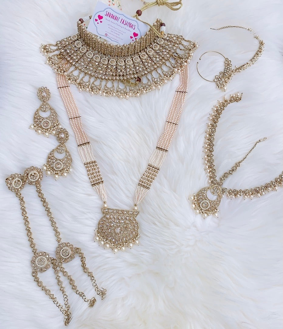 hug-your-neck choker, long haar, hand pieces, Matha Patti, Earrings, Nose rings .. High quality Polki Design. In stock.