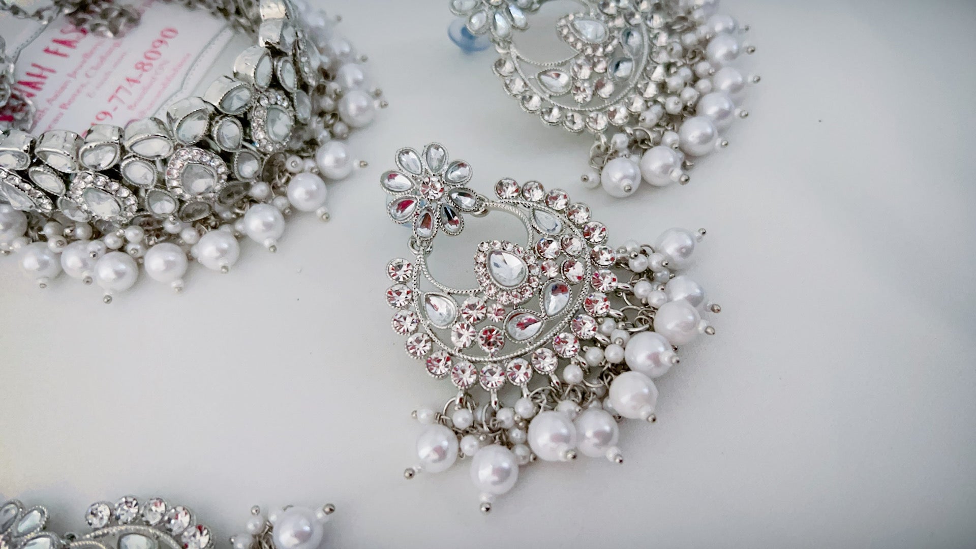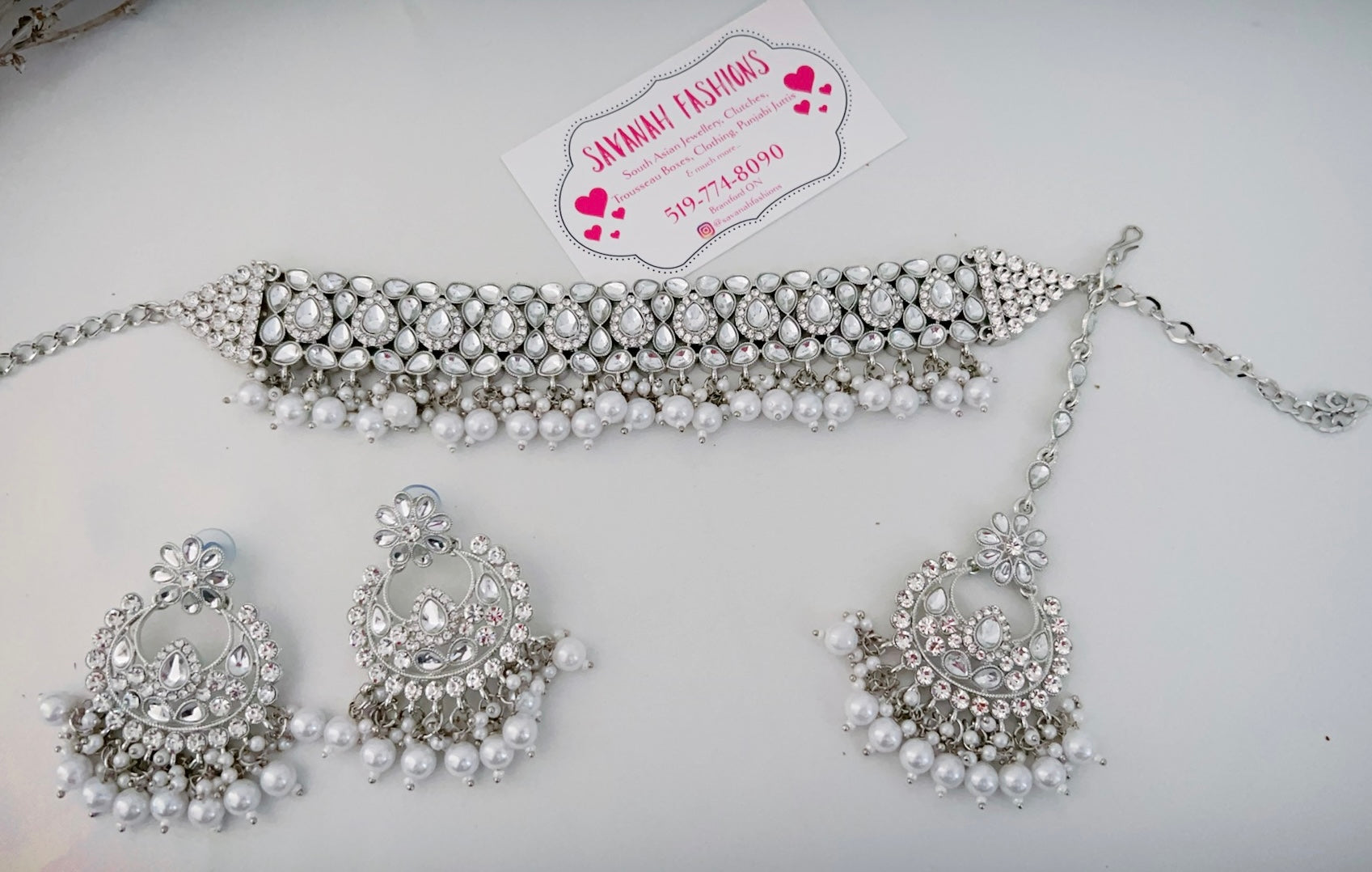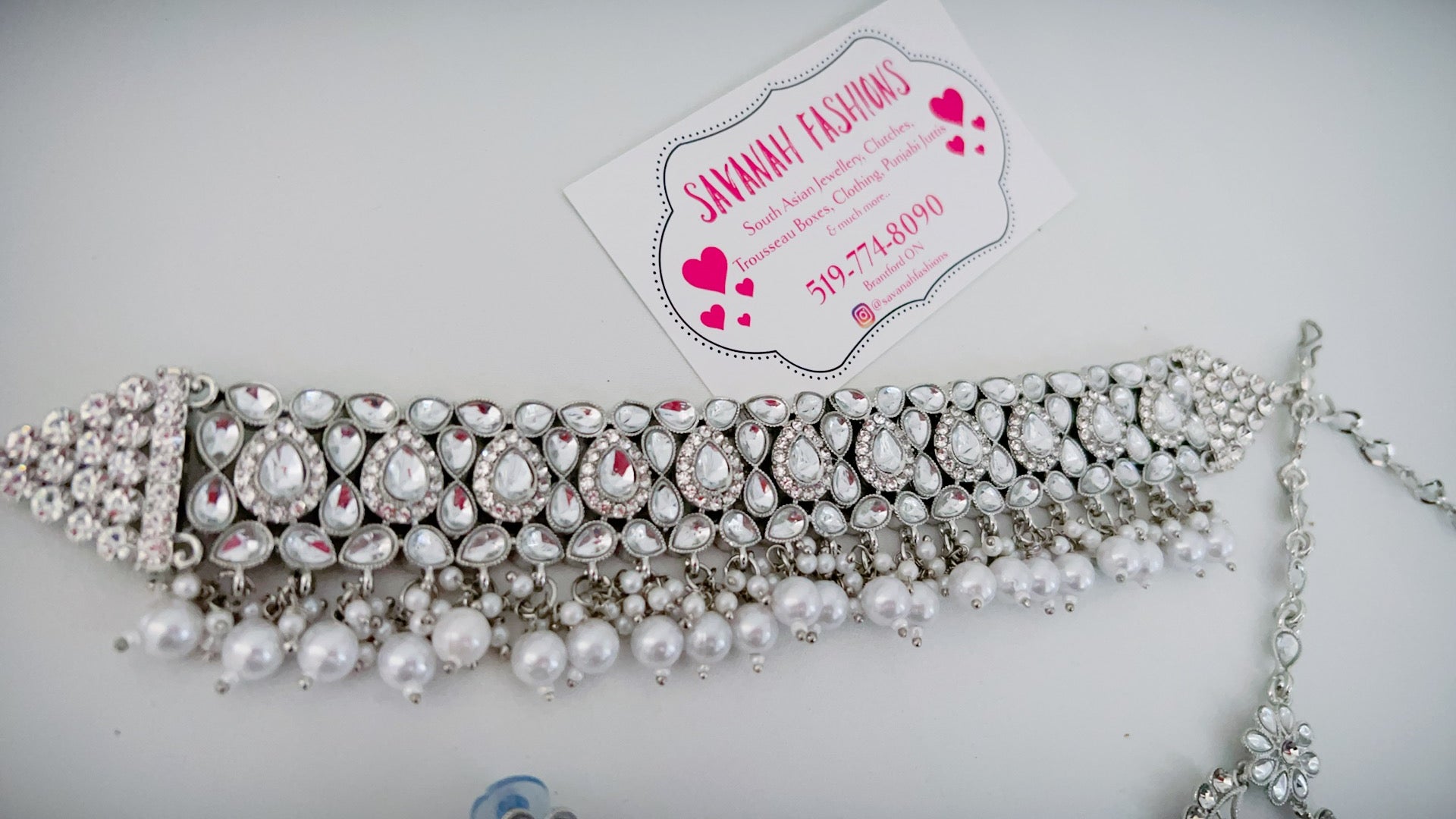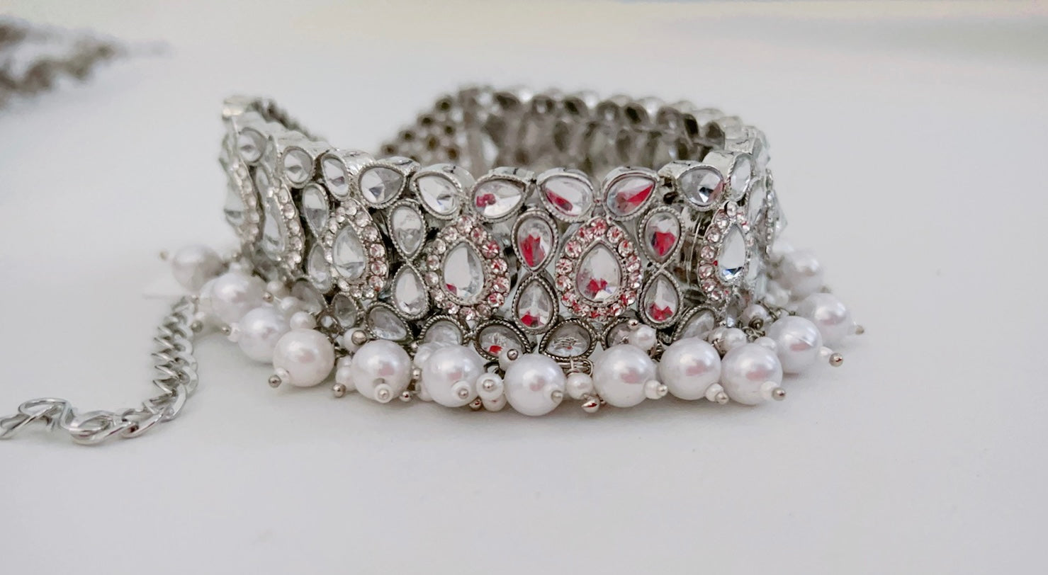 Sparkling silver design necklace set which ca be worn beautifully as a choker or a necklace that hugs your collar bone.