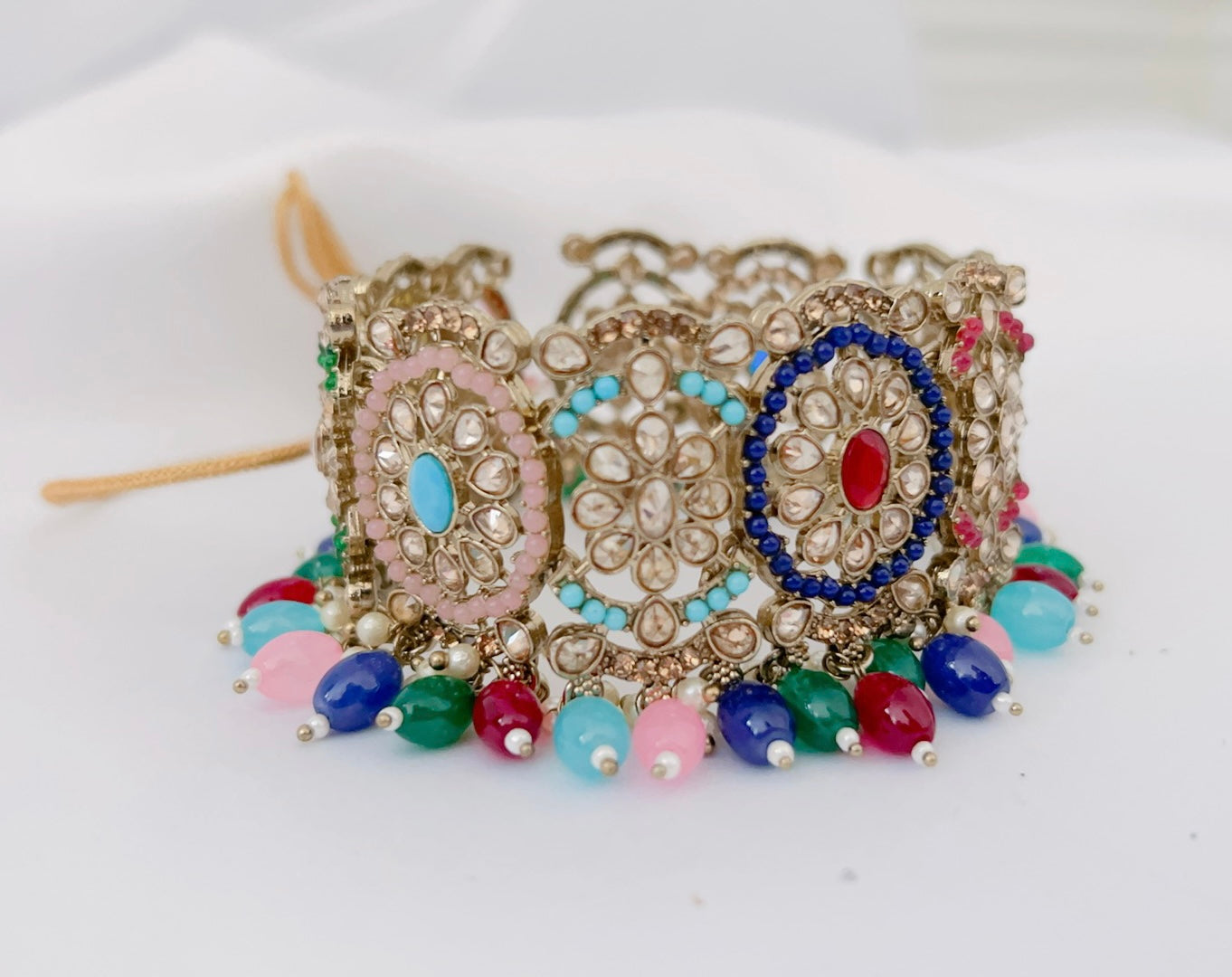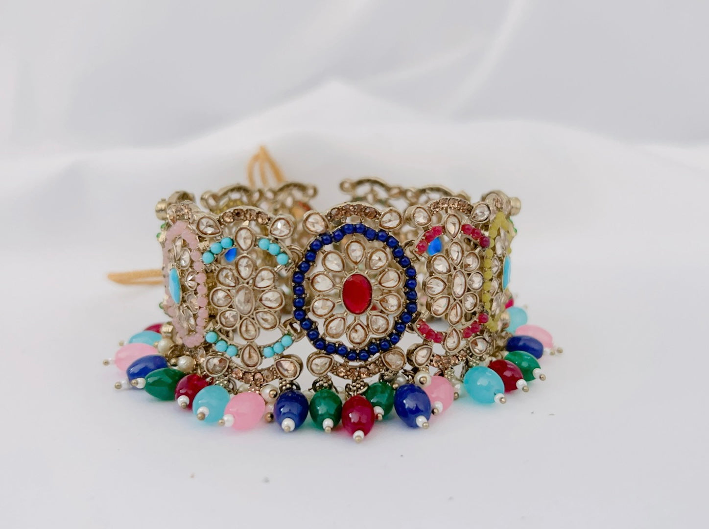 Full set includes: Necklace (choker), earrings, and tikka