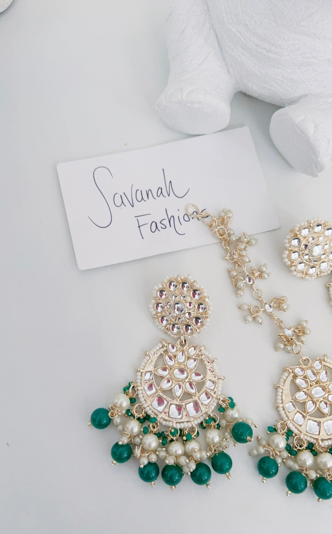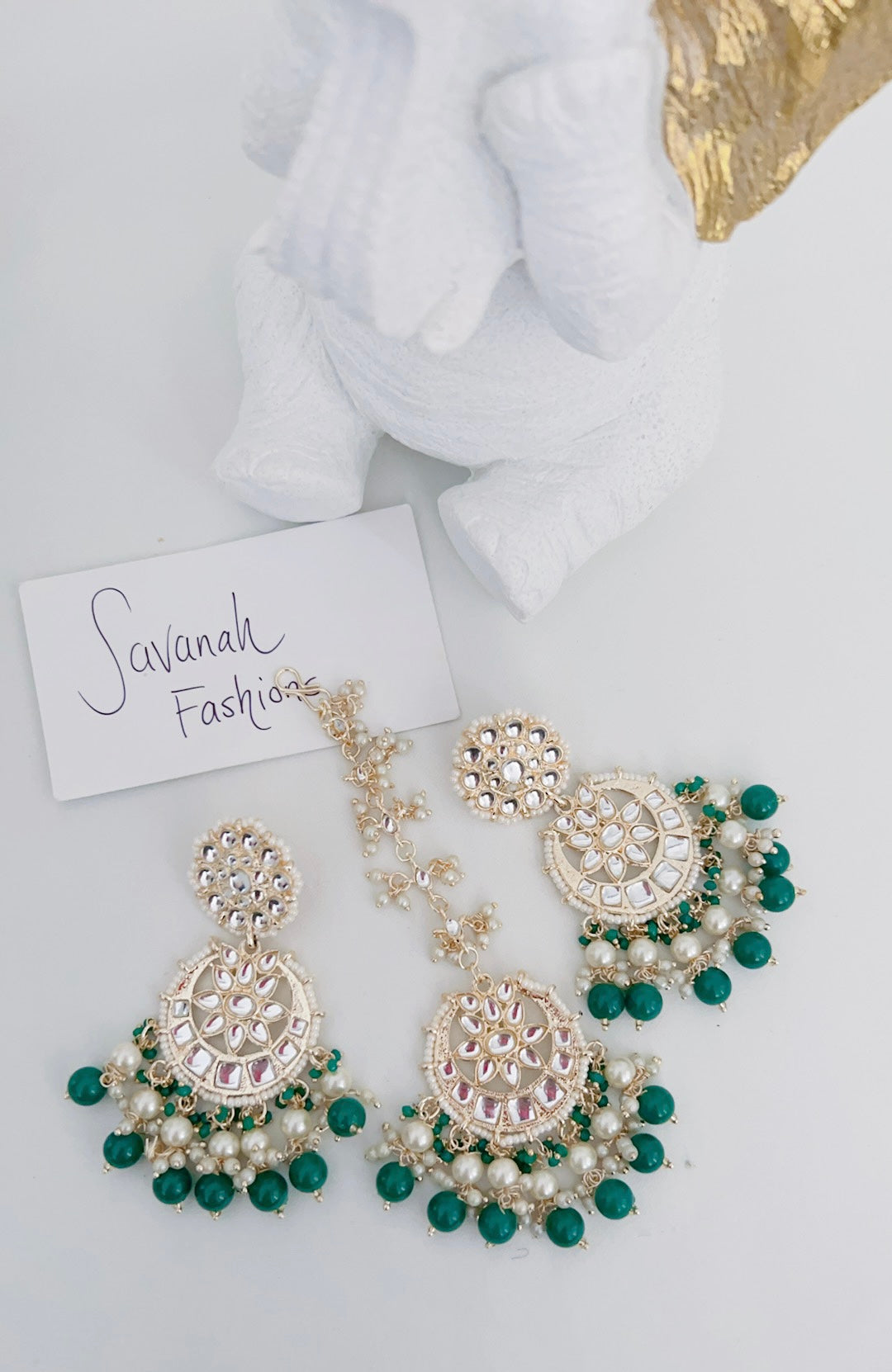 Inspired by bollywood, this tikka set is lightweight and comfortable, with a grren accent.