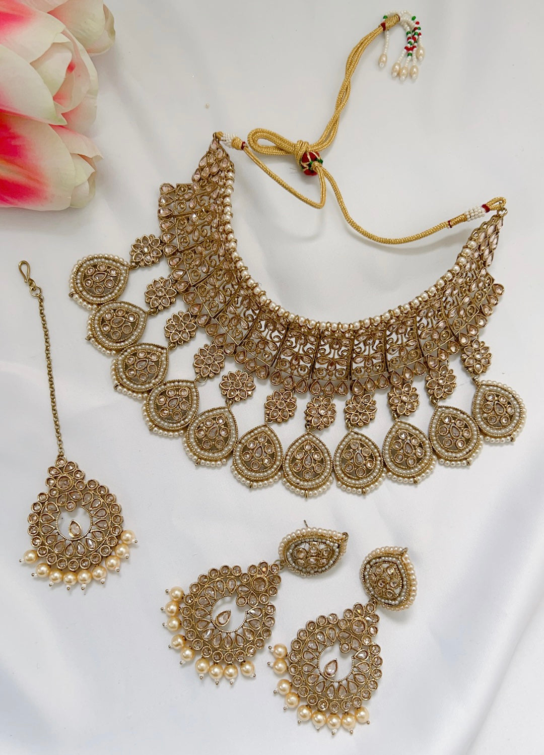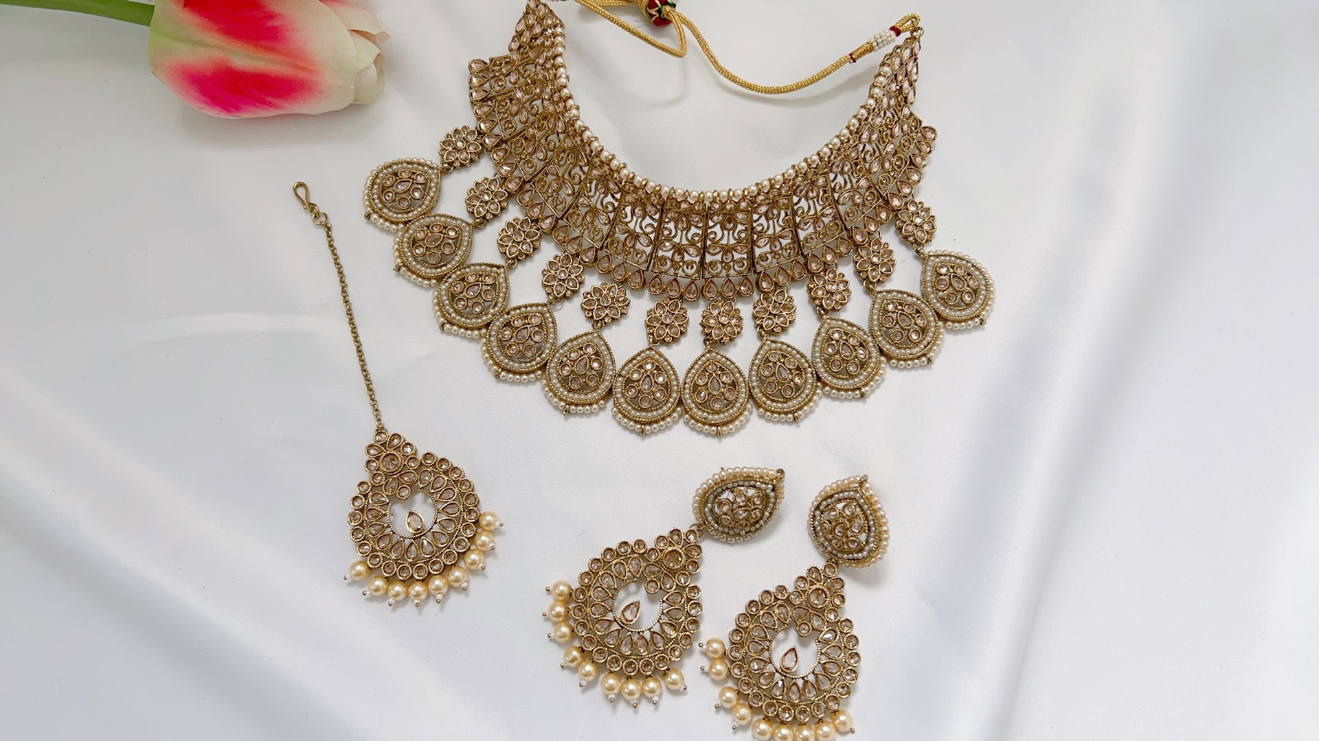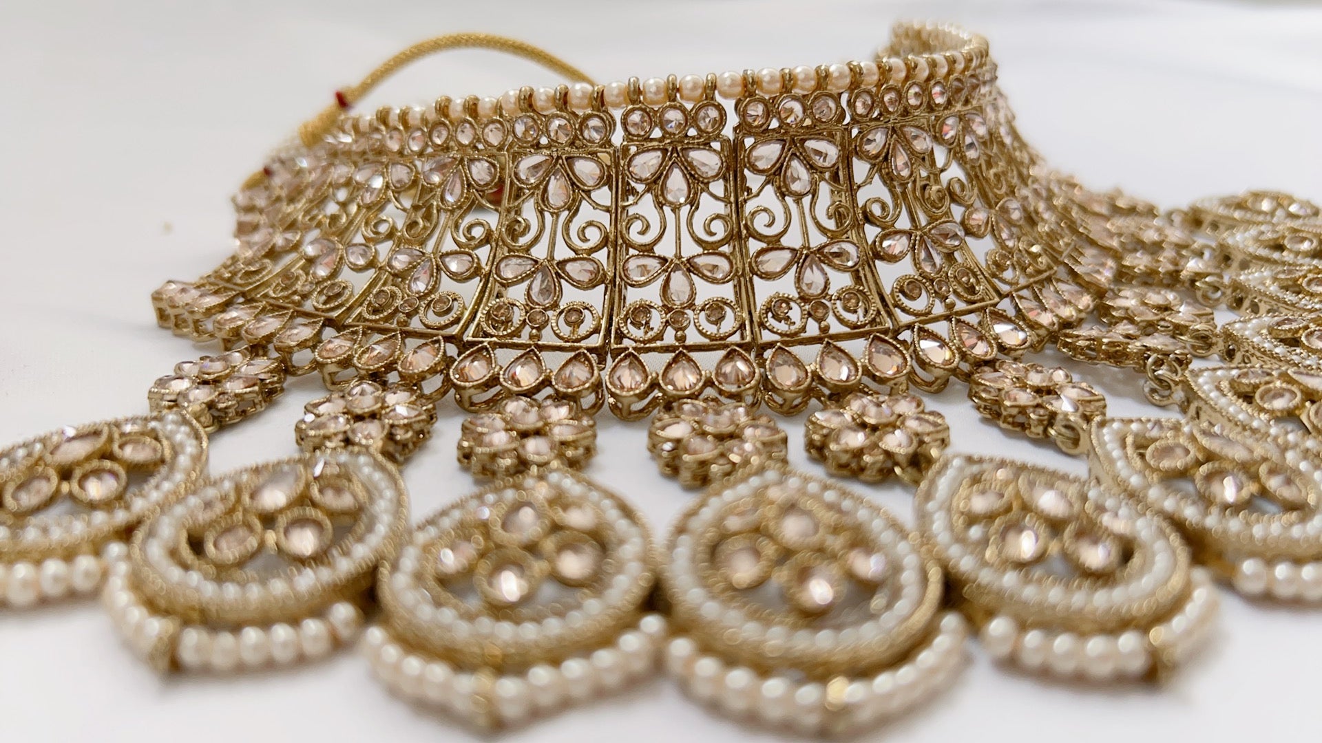 Uniquely designed necklace set that sits beautifully as a necklace or can be worn as a choker.