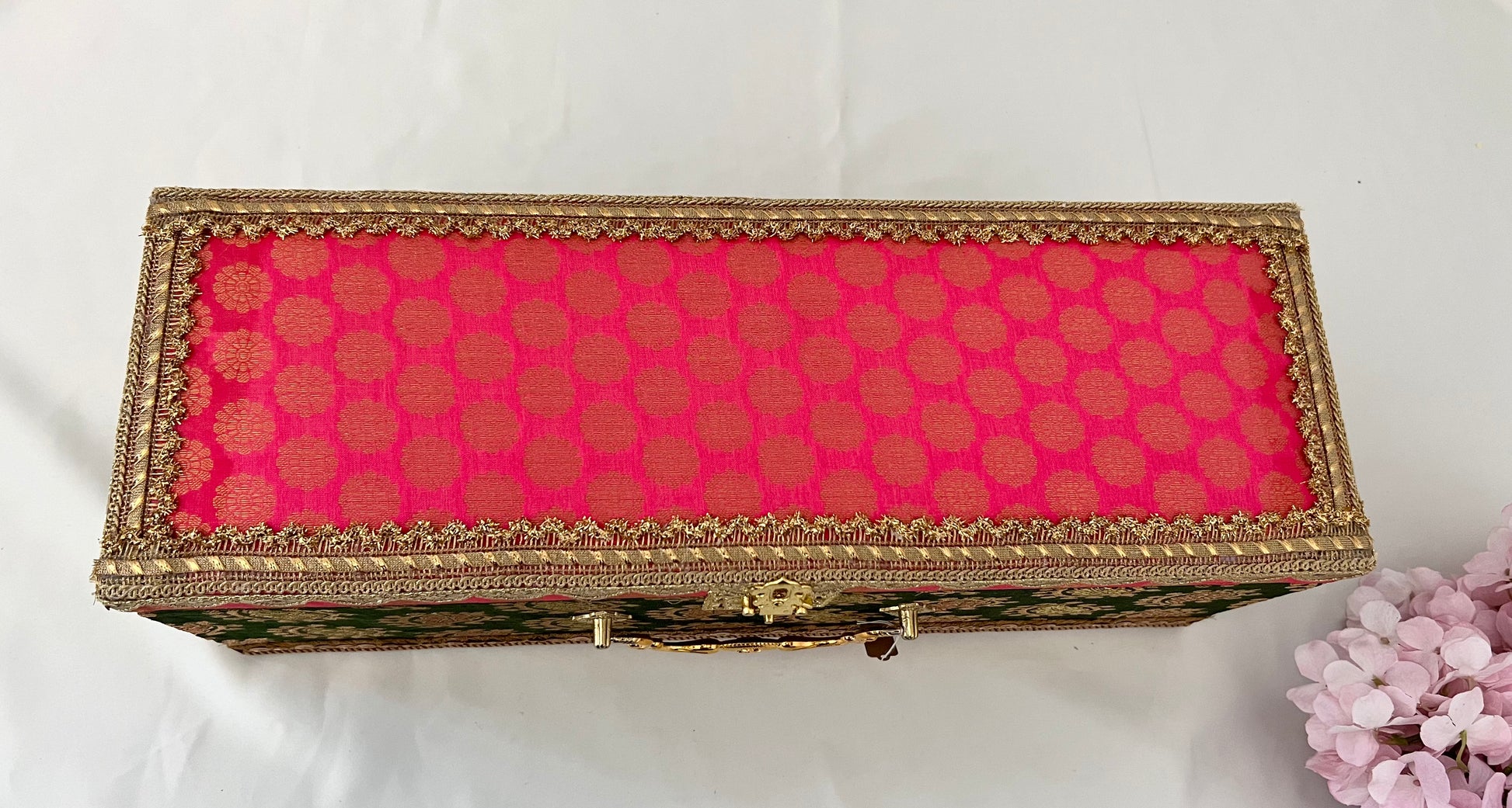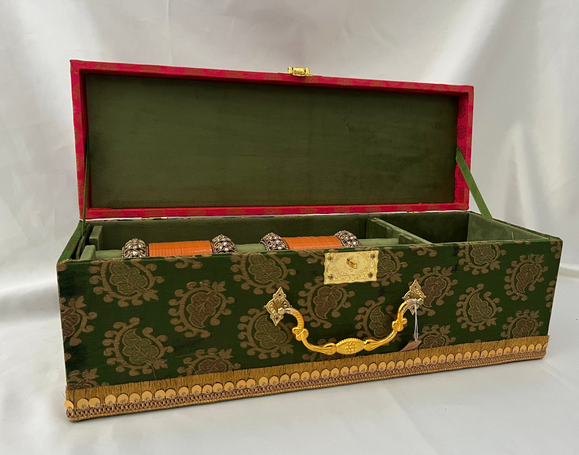 Introducing our one-of-a-kind trousseau box that is versatile and extremely spacious for your chooda and kaleere.