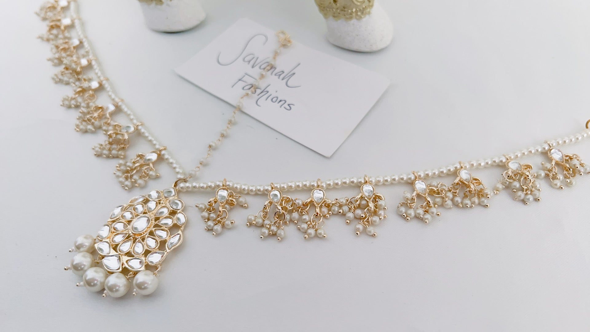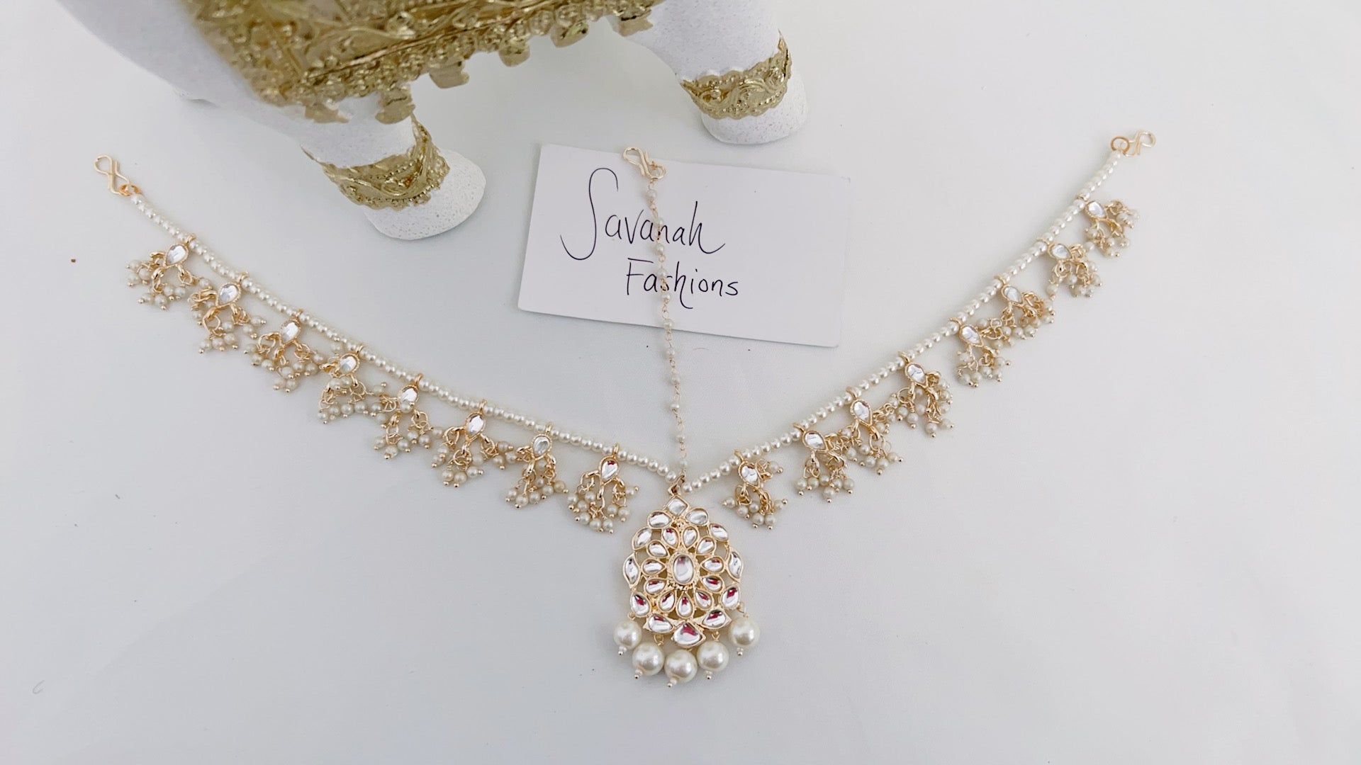 Delicately designed with pearls and faux kundan, this high quality head piece adds a great statement to any style.