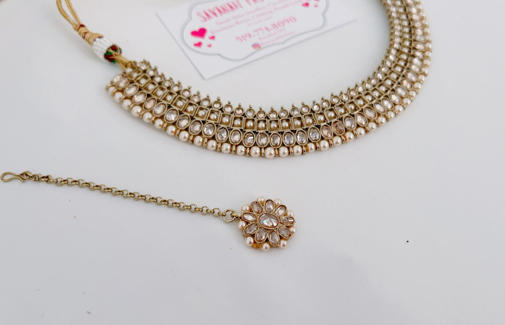 This necklace sits beautifully as a choker or around the collar bone. A great accessory to match any outfit. Full set includes: necklace, petite jumki earrings, and tikka
