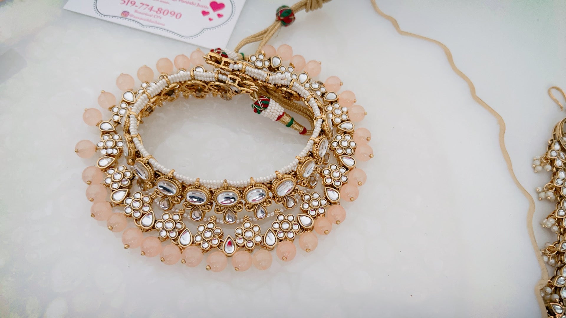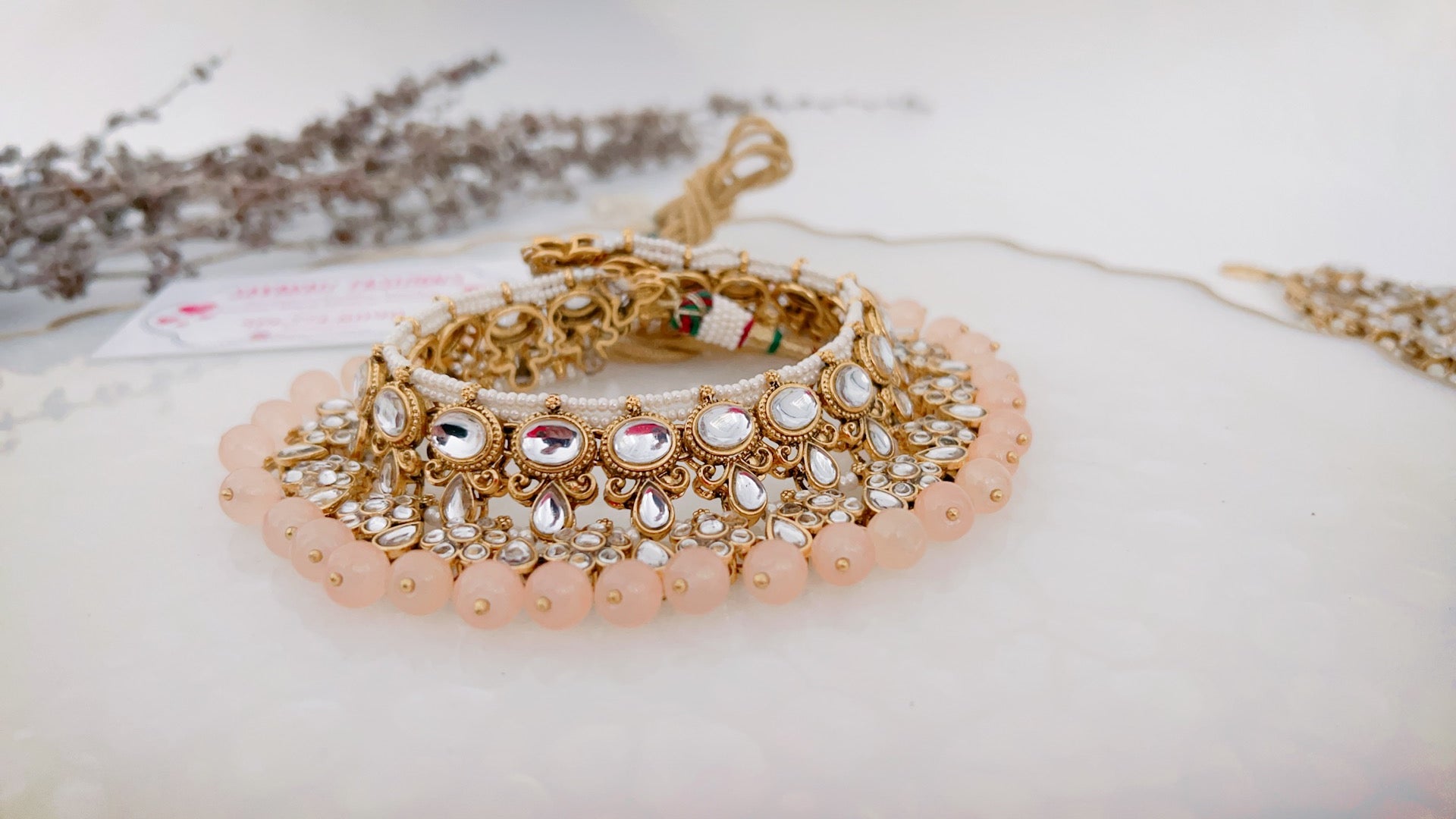 Our 'Dream' necklace set is a combination of elegance and class. We have made this piece using high quality pearls and kundan cut material, the perfect royal touch to accessorize your outfit. 'Dream' comes in two options as a full set: with the jhoomar to complete it as a semi-bridal or without the jhoomar as a party wear set.