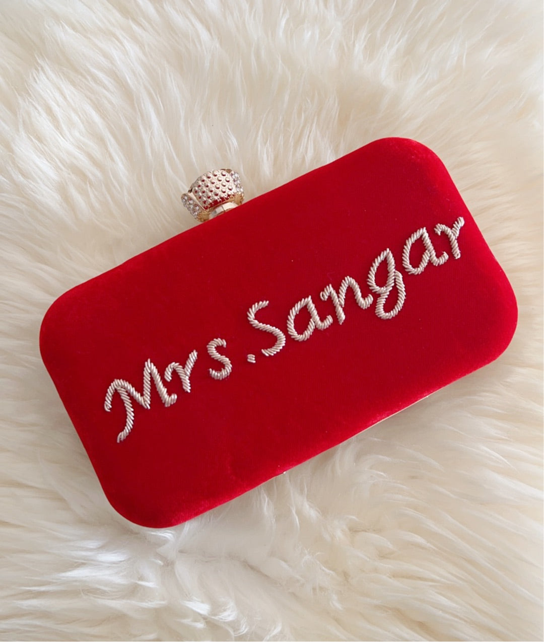 Originally designed by Savanah Fashions, this beautiful clutch is double sided heavy embroidery with personalized name on the back.