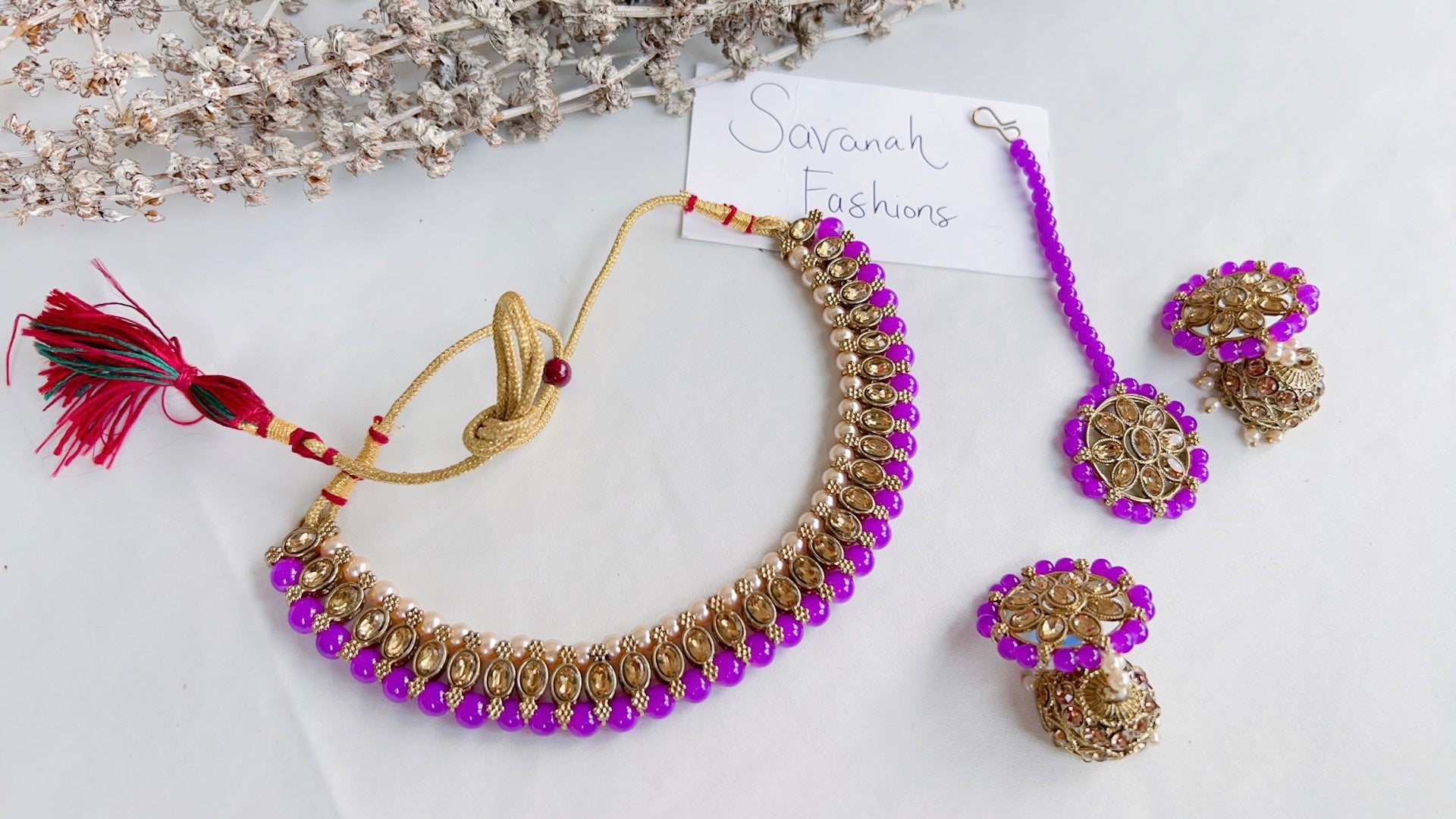 Full set includes: Necklace, tikka, and earrings