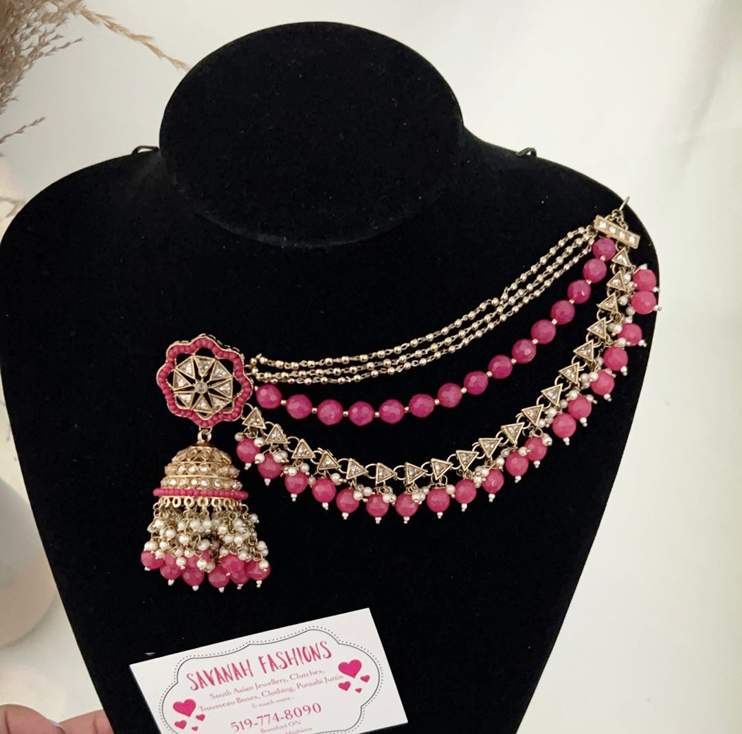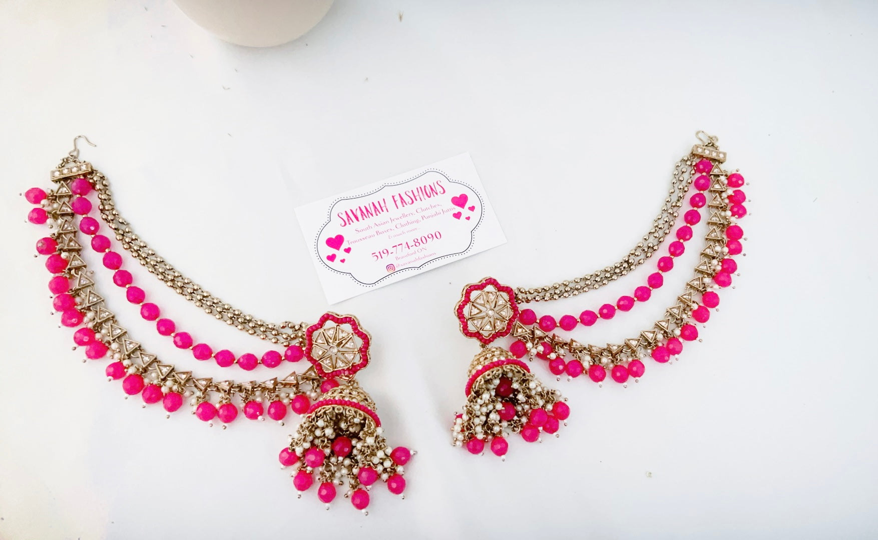 Bright and beautiful jhumki design consisting of polki and pearls. These jhumkis come with attached sahare for that heavy look without the heavy weight.