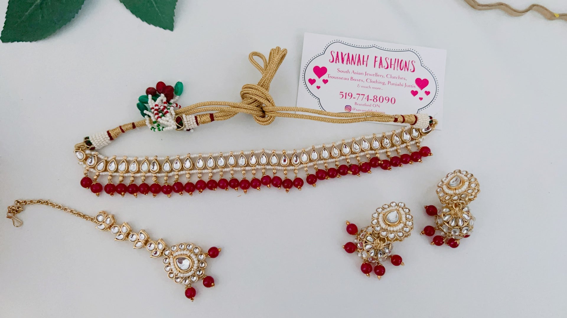 The most flexible necklace design that sits perfectly as a choker to glam up any outfit, with petite jhunkis and tikka.