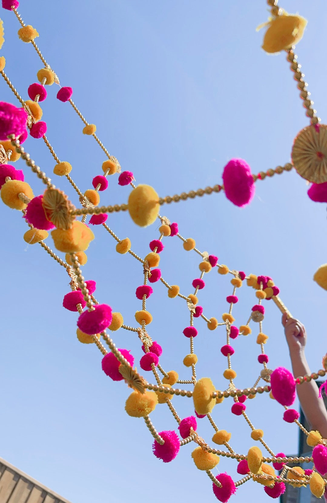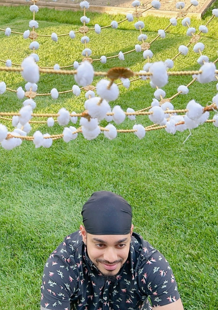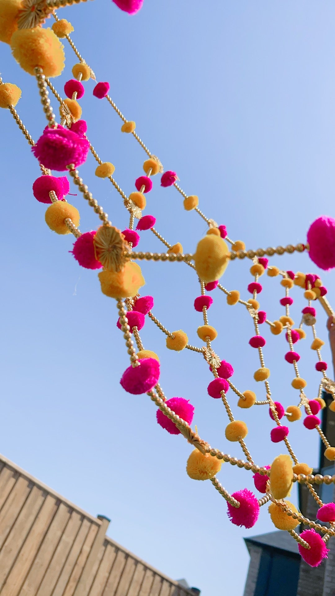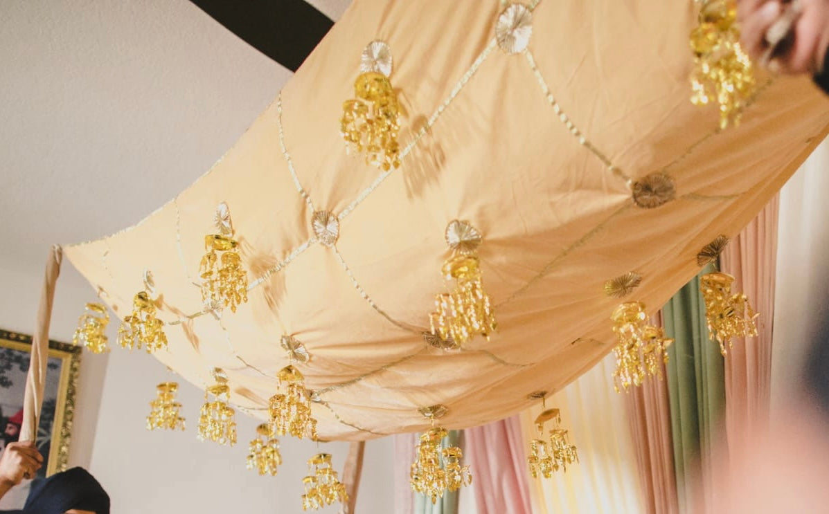 Beautifully made chunni with velvet fabric and dangling kaleere. This dupatta can be used at haldi/maiyan ceremonies or as a decor piece.