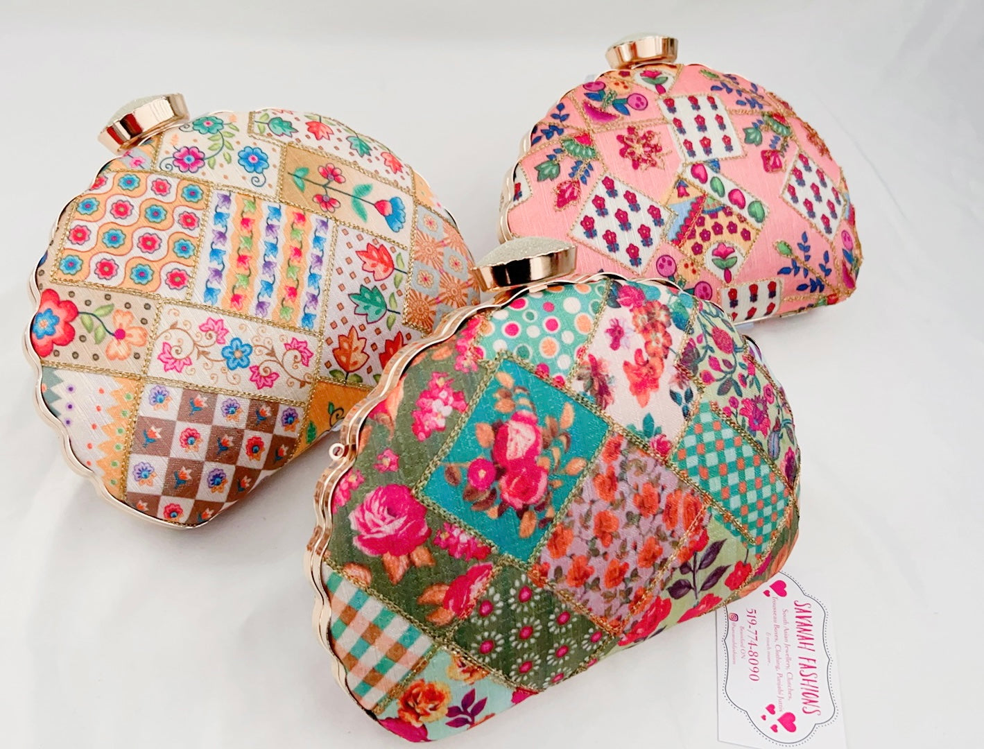 I wanted to make a design that brought together the 70and 80s with patterns unique to that era. A blend of many patterns put together on these clutches make them a great accessory with a pop of colour.