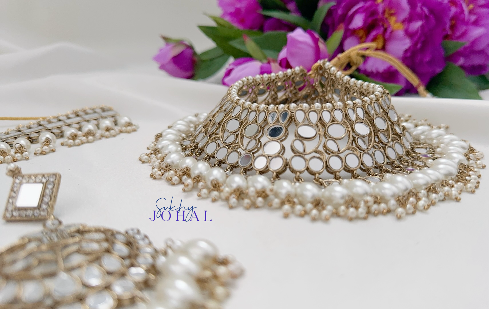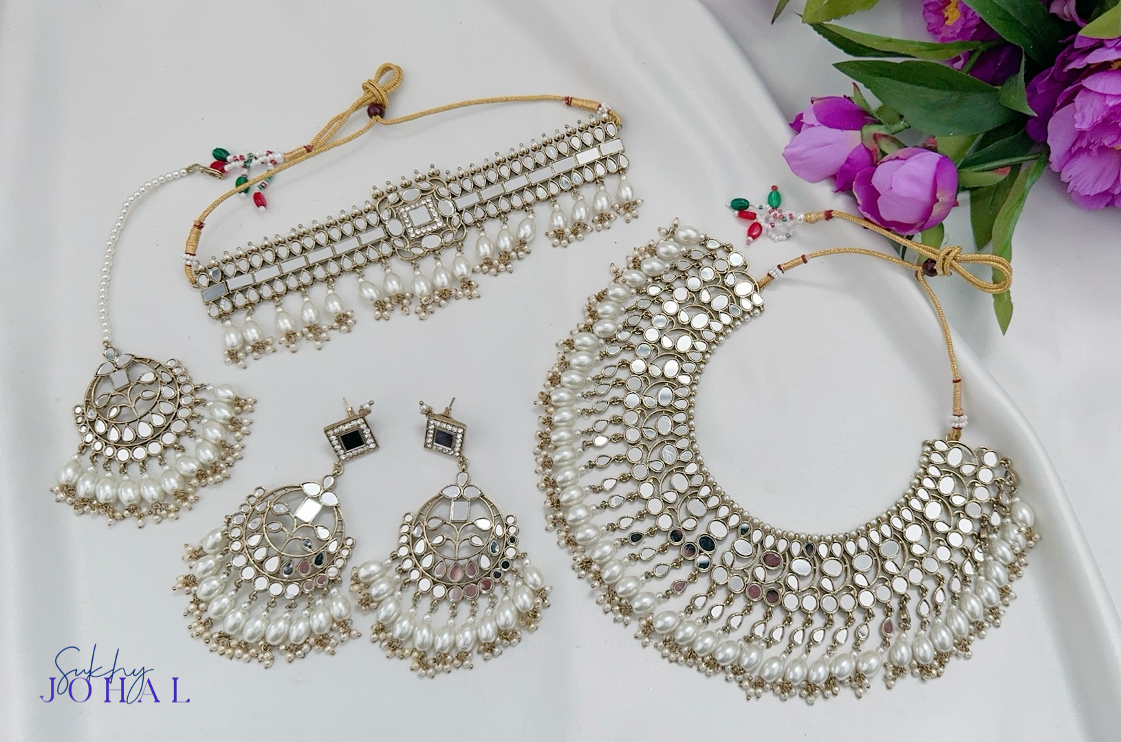 Another design that makes me proud to add to our collection, Mirat. We have chosen the highest quality pearls that will not loose colour, shine, or peel off. This double necklace look is versatile that makes for a great bridal or party wear set as it can be divided up to wear individually or together.