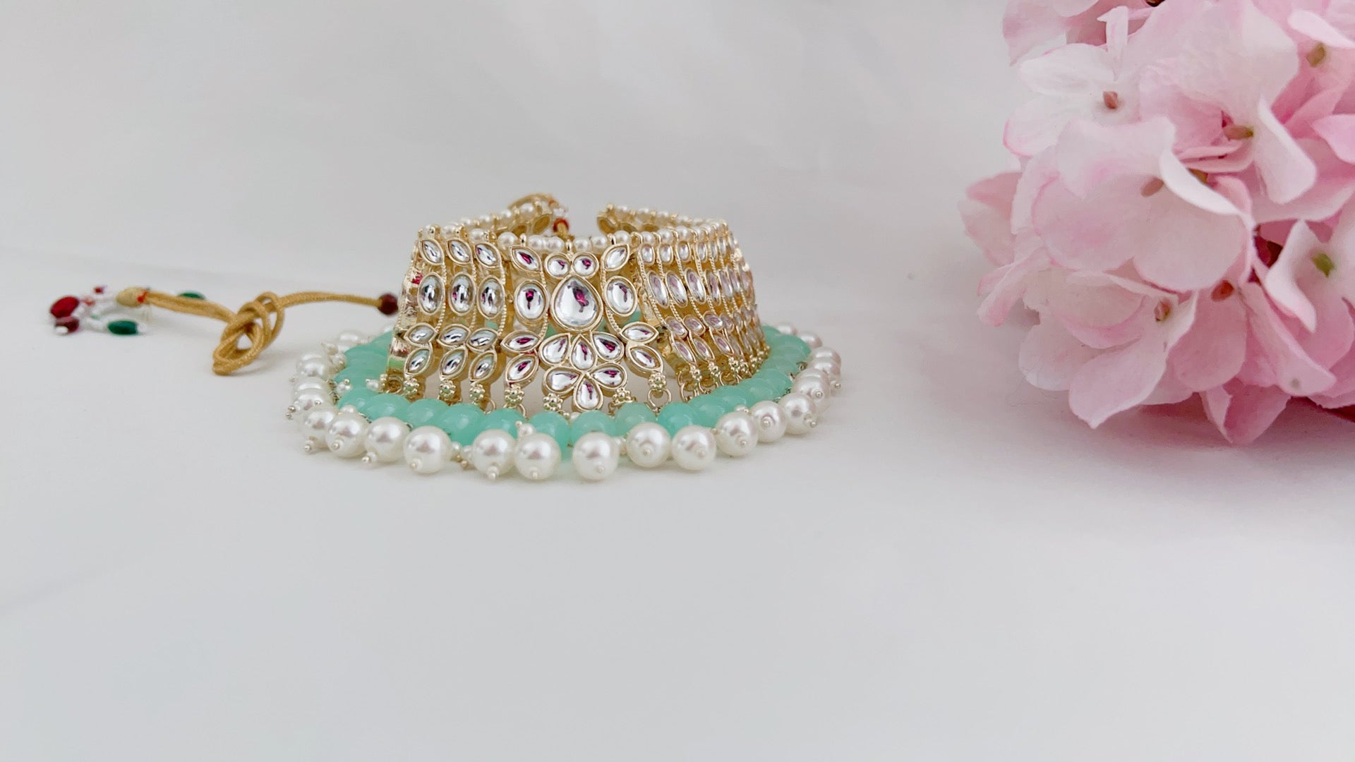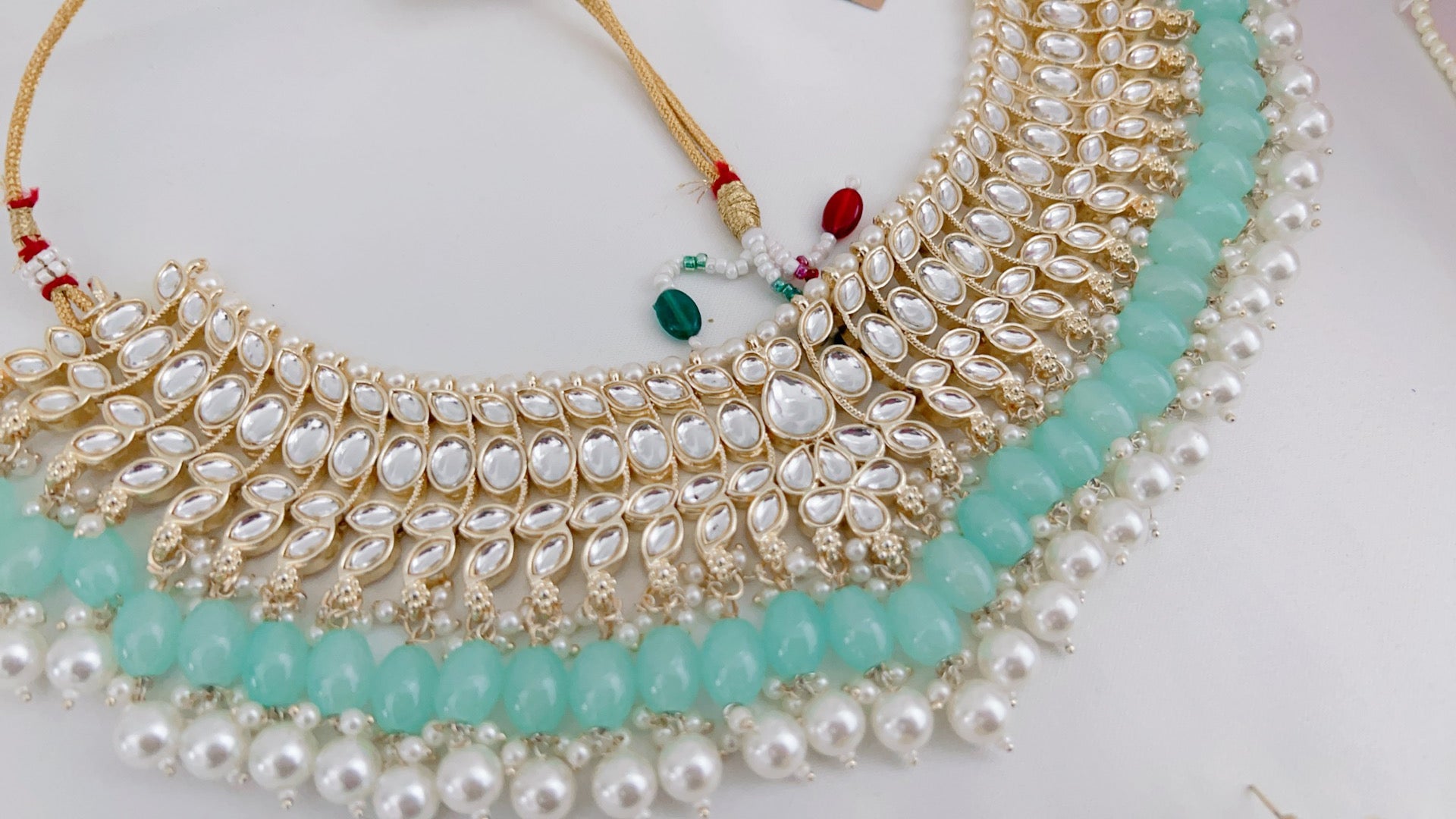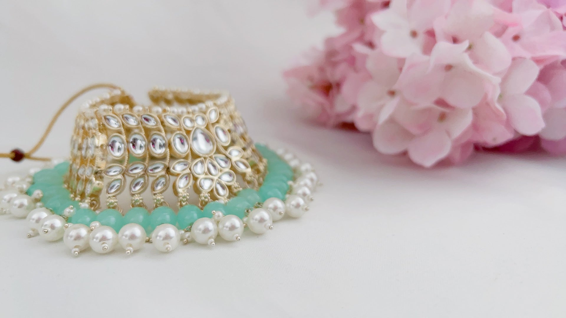 When Alia-Ranbir got married, I instantly fell in love with Alia's bridal style, which I may not leave alone for a while.. Our latest design has the same ivory base which all of our Alia Collection does with a pop of colour. This colour that we have used is not the ordinary sage green that has been trending, it is a mix of pastel blue and sage green making a brand new shade to flaunt.