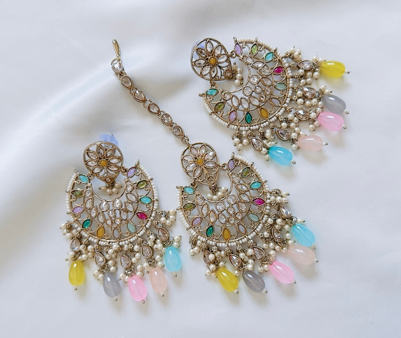 A breath of fresh air... is what I'm feeling right now going through this new shipment of Polki earring and tikka sets. They are breathtaking beautiful, lightweight, and comfortable to wear! Available in many colour (under the same name).