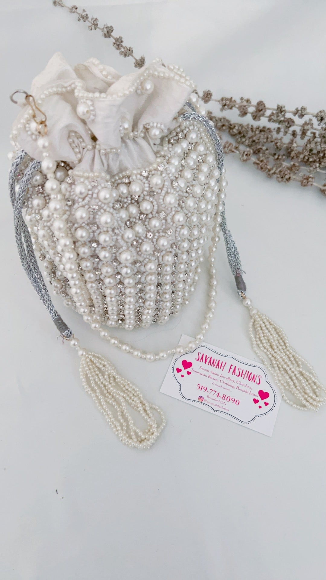 Pearl and stone potli that fits all essential perfectly including phone, keys..etc.
