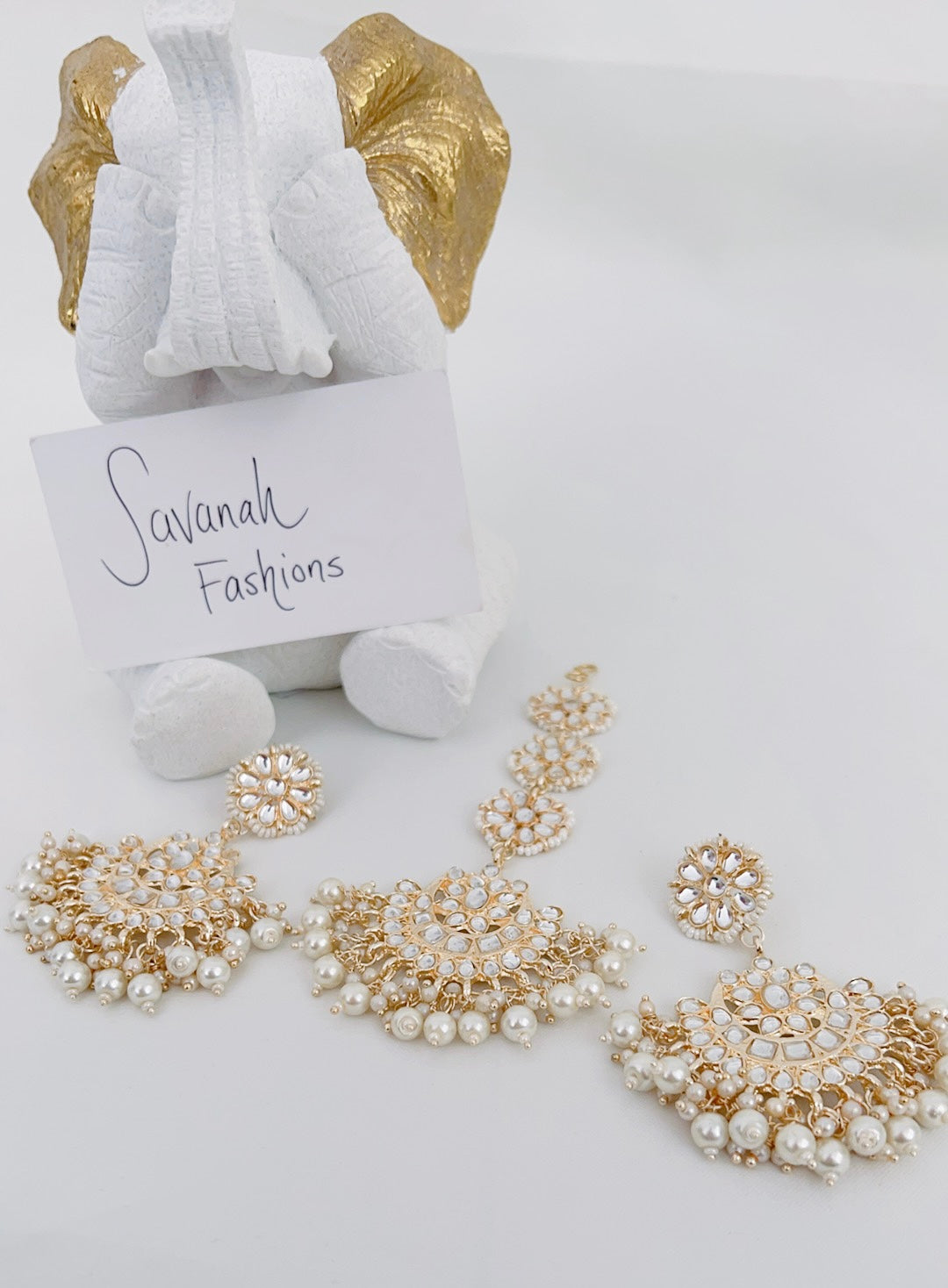 Elegantly designed tikka set, light weight earrings, comfortable wear.