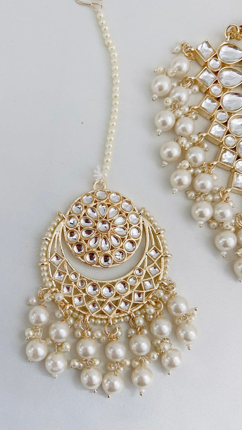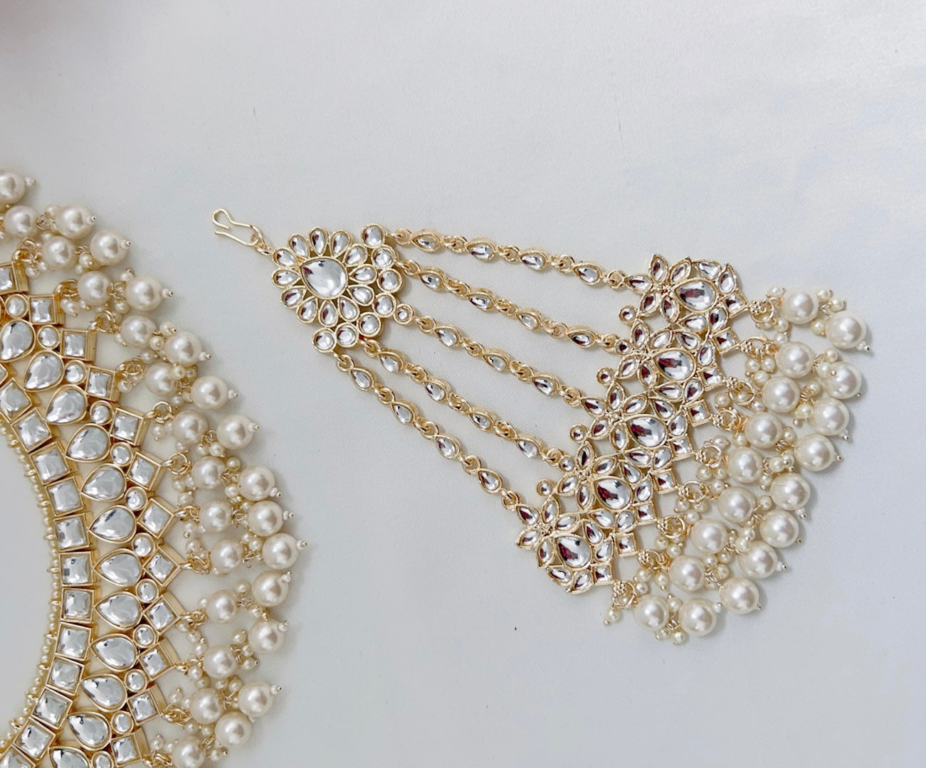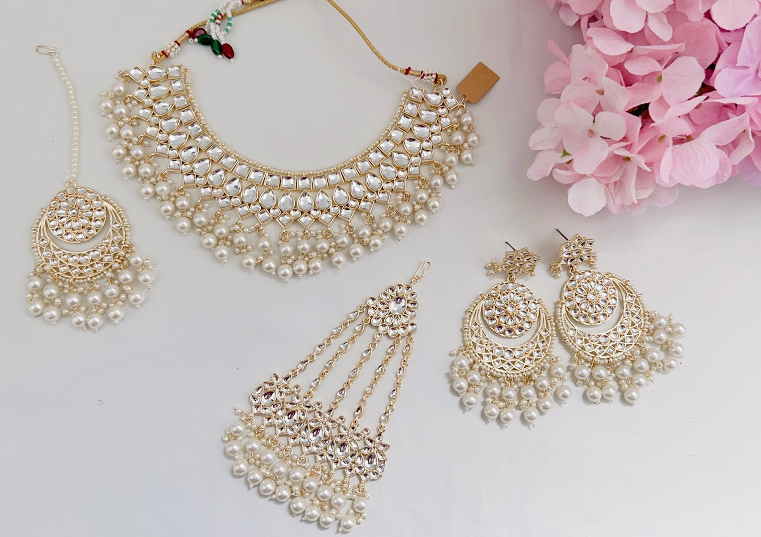 Full set includes: necklace, tikka, earrings, and jhoomar.