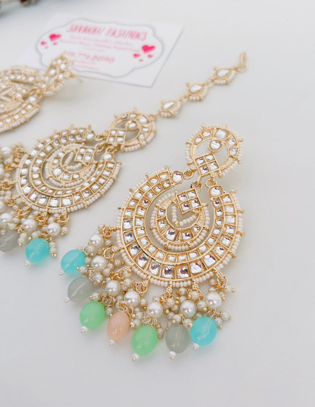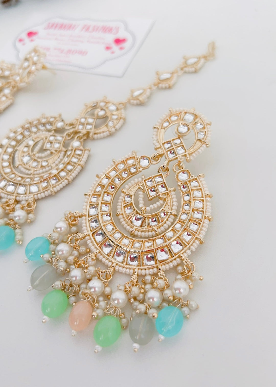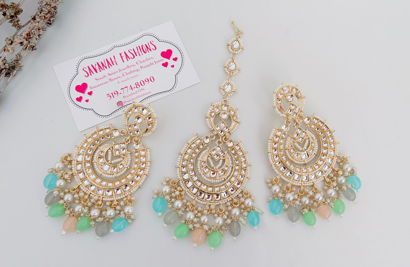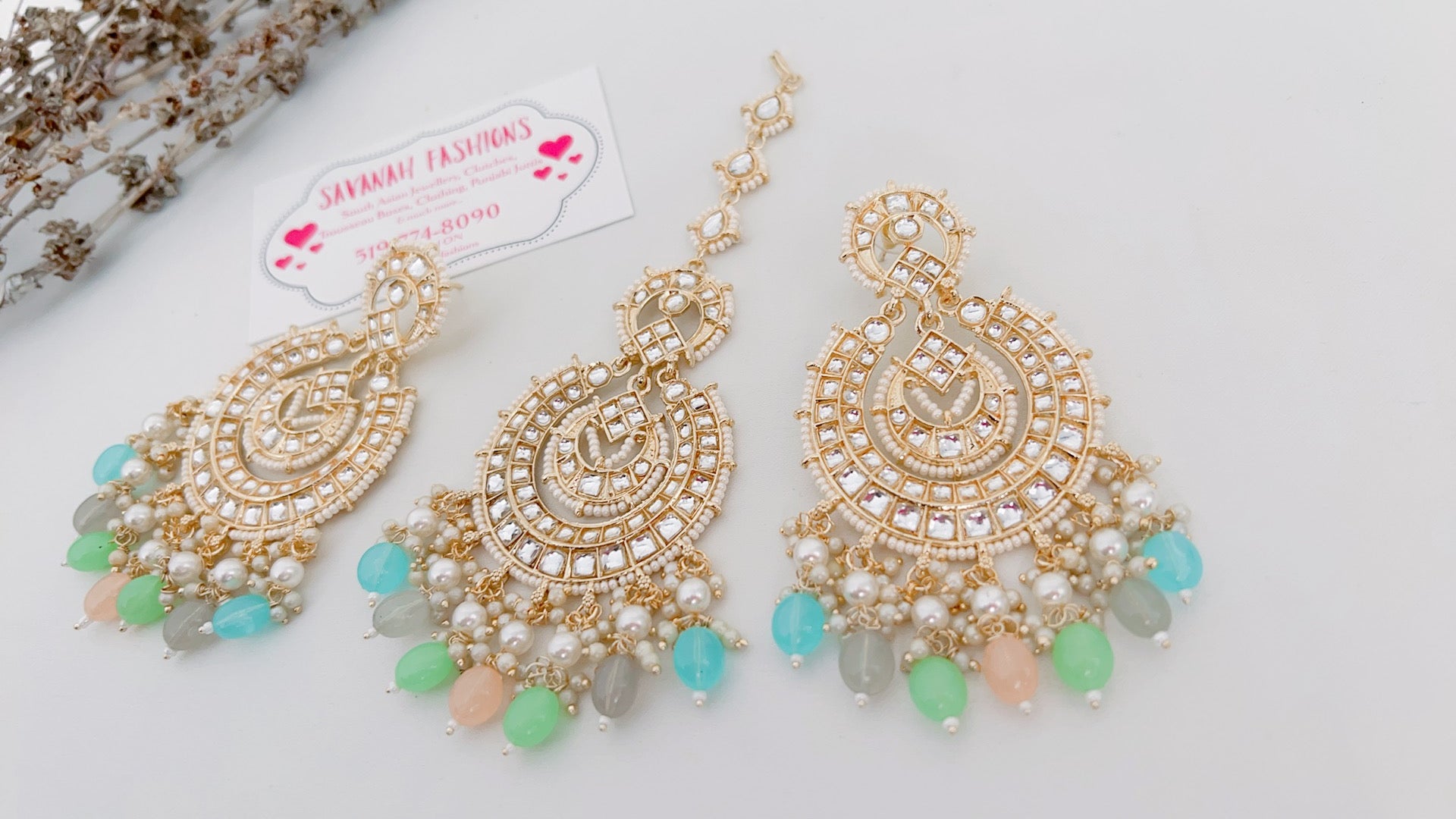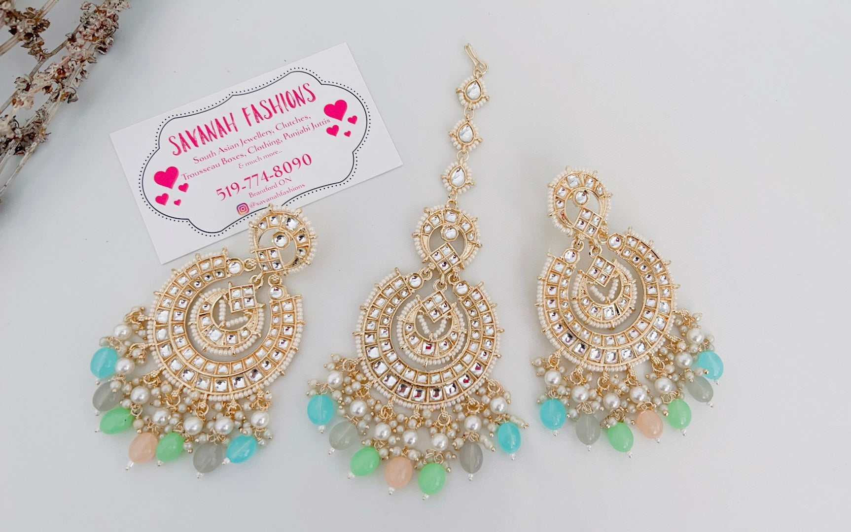 We strive to bring to you unique colour combinations. Our Rayen Tikka Set is composed of soft grey/peach/blue combinations. Stand out with this tikka set at the next event!