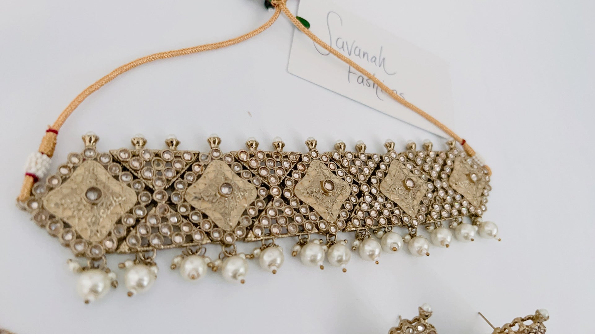 Antique style necklace set, can be worn as a choker as well, paired with jhumkis & tikka.