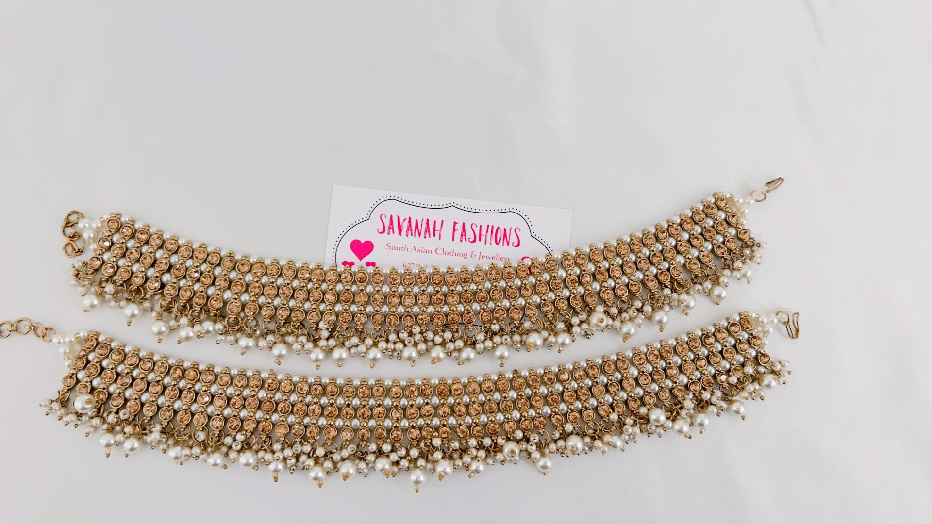 These payals consists of stone and pearl work, ideal for a bride or anyone that prefers statement anklets.