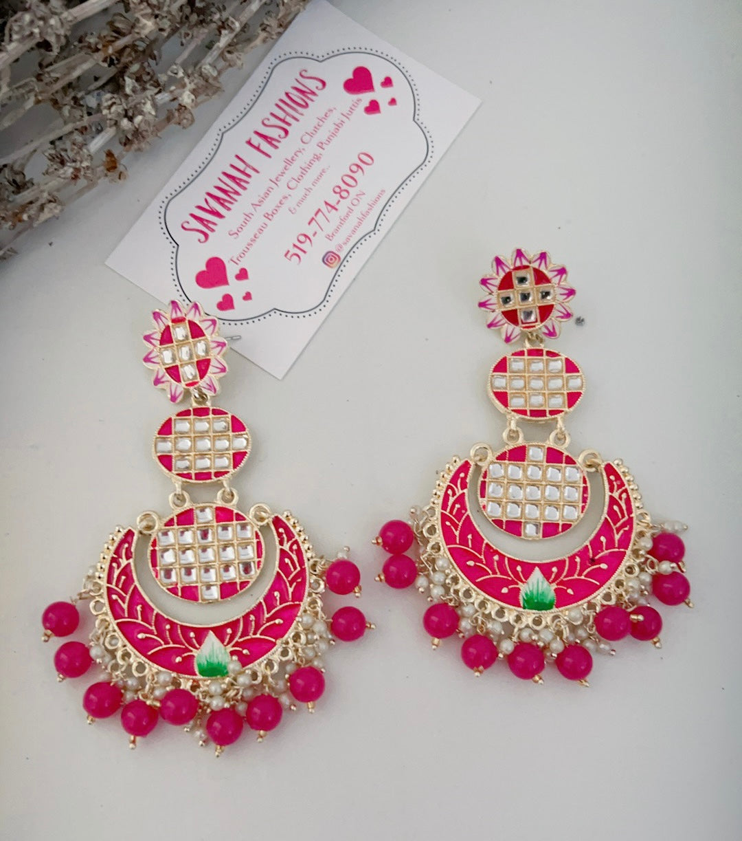 Colourful and bright meenakari meets kundan style earrings. Lightweight design, comfortable wear.