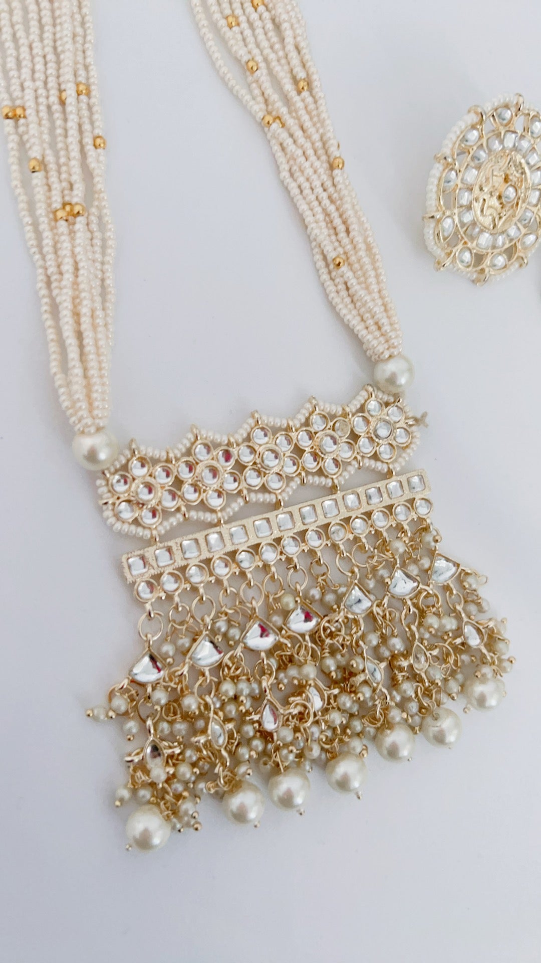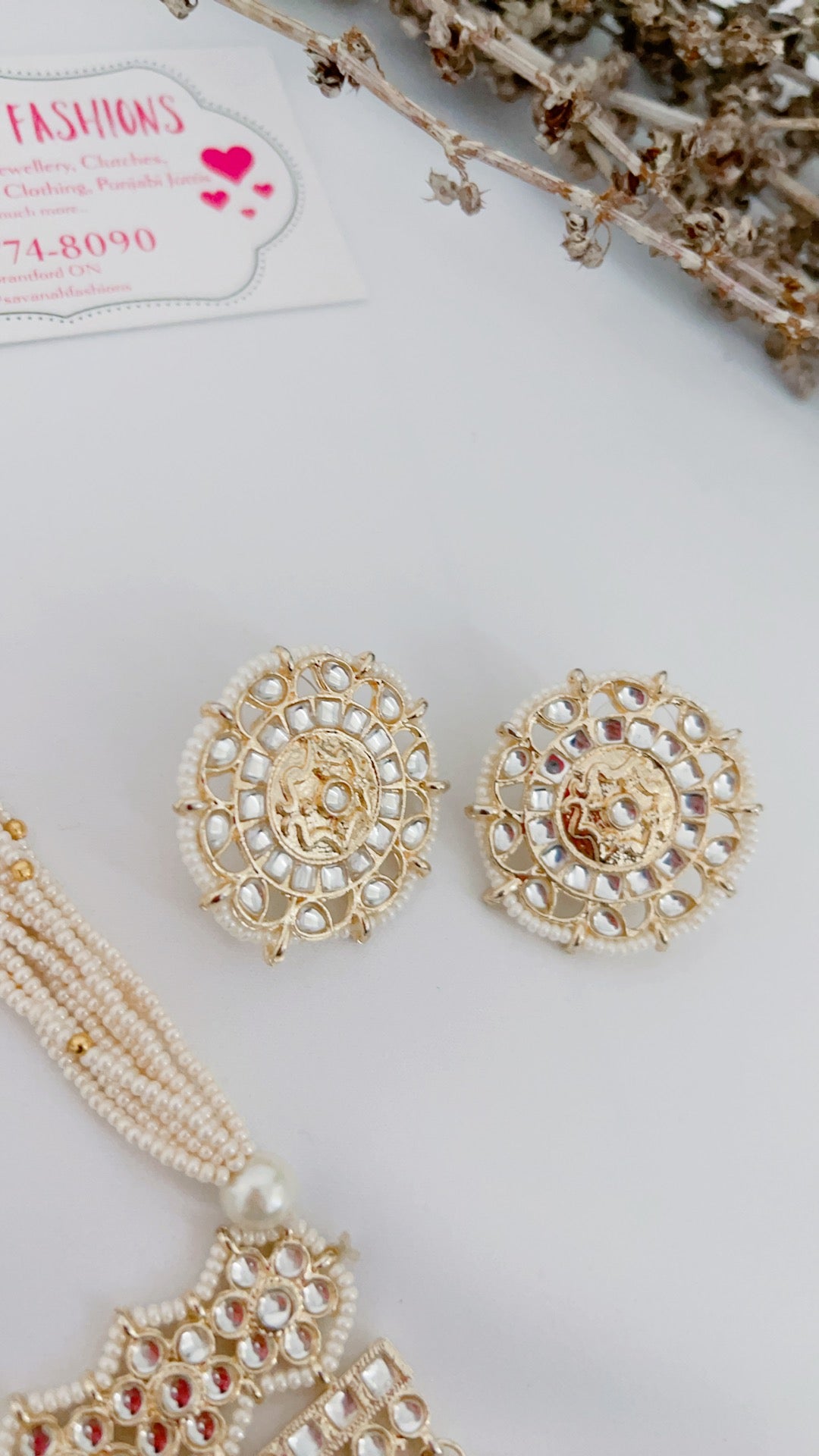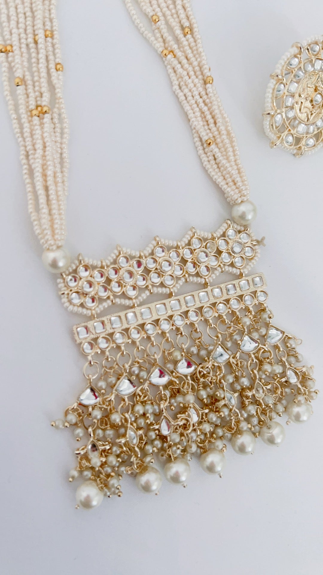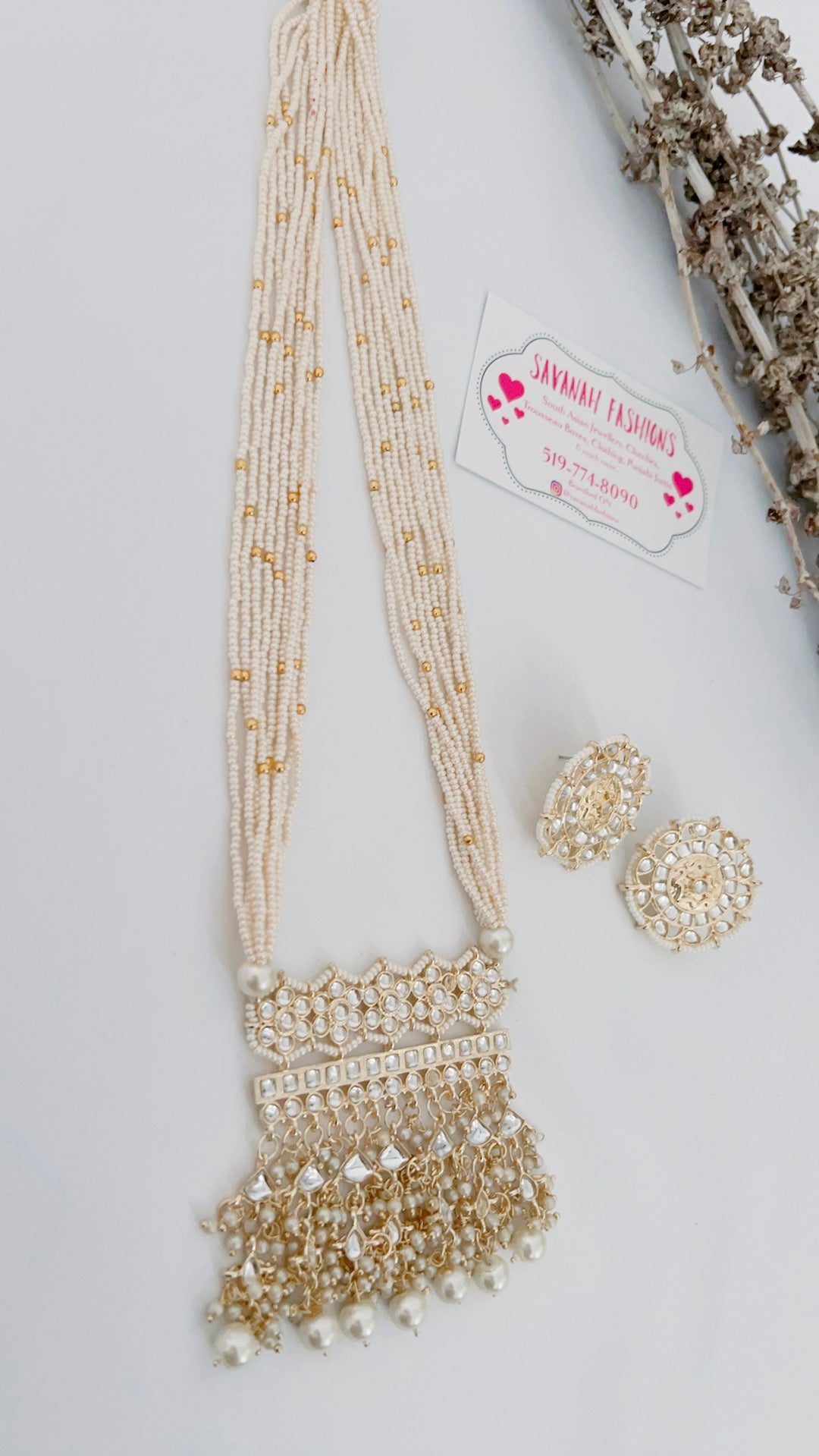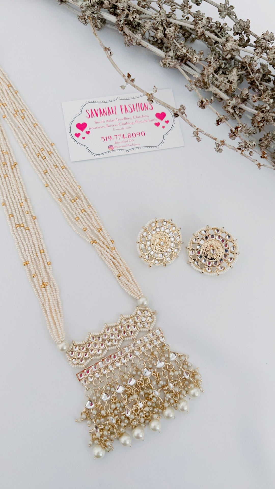Add a touch of royal to any outfit with this beautiful long haar necklace design and studs.
